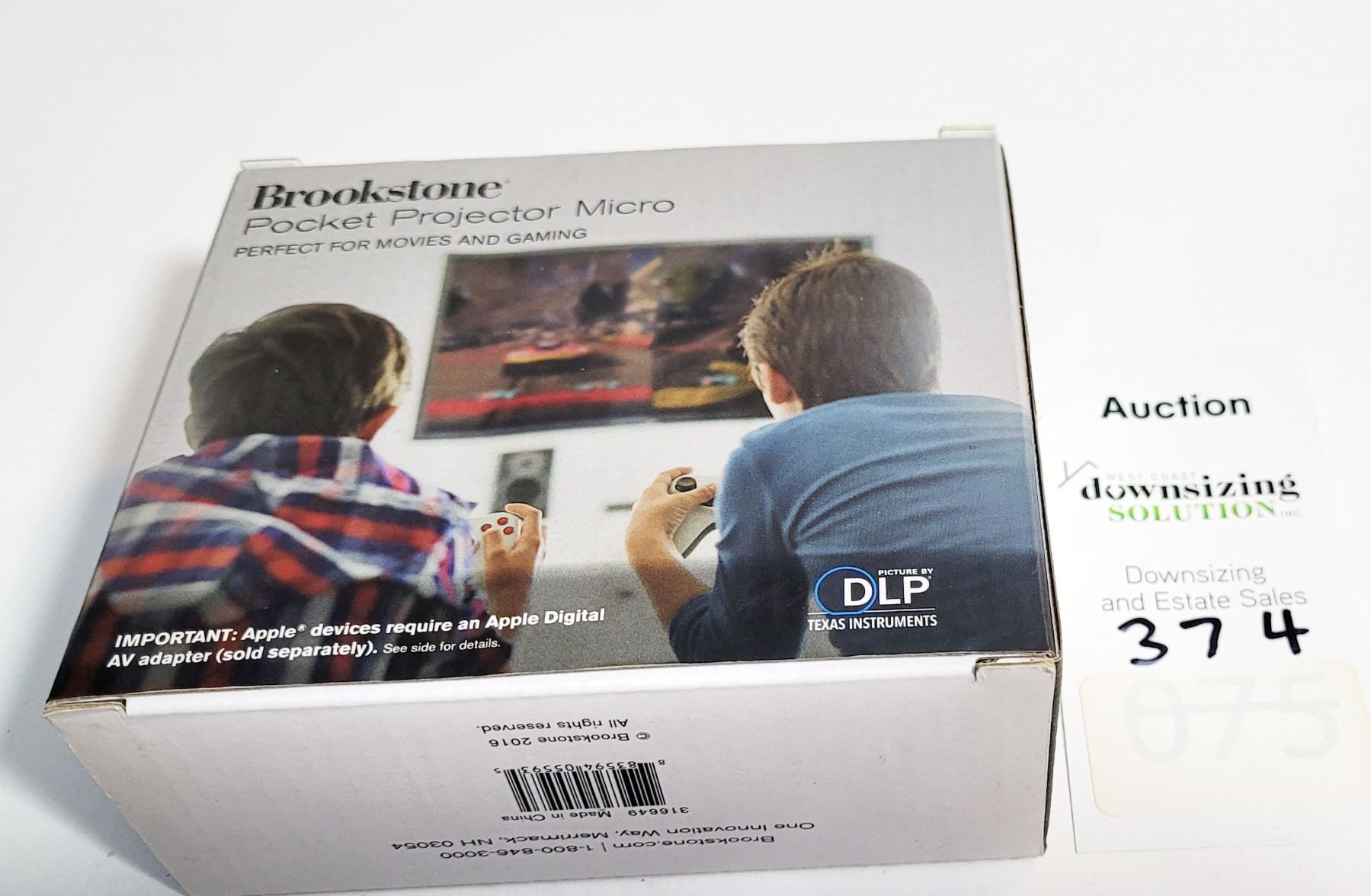 Used only couple times __ Like New -Brookstone Pocket Projector Mirco projector projects up to a 50 inch image. Smaller than iPhone 6