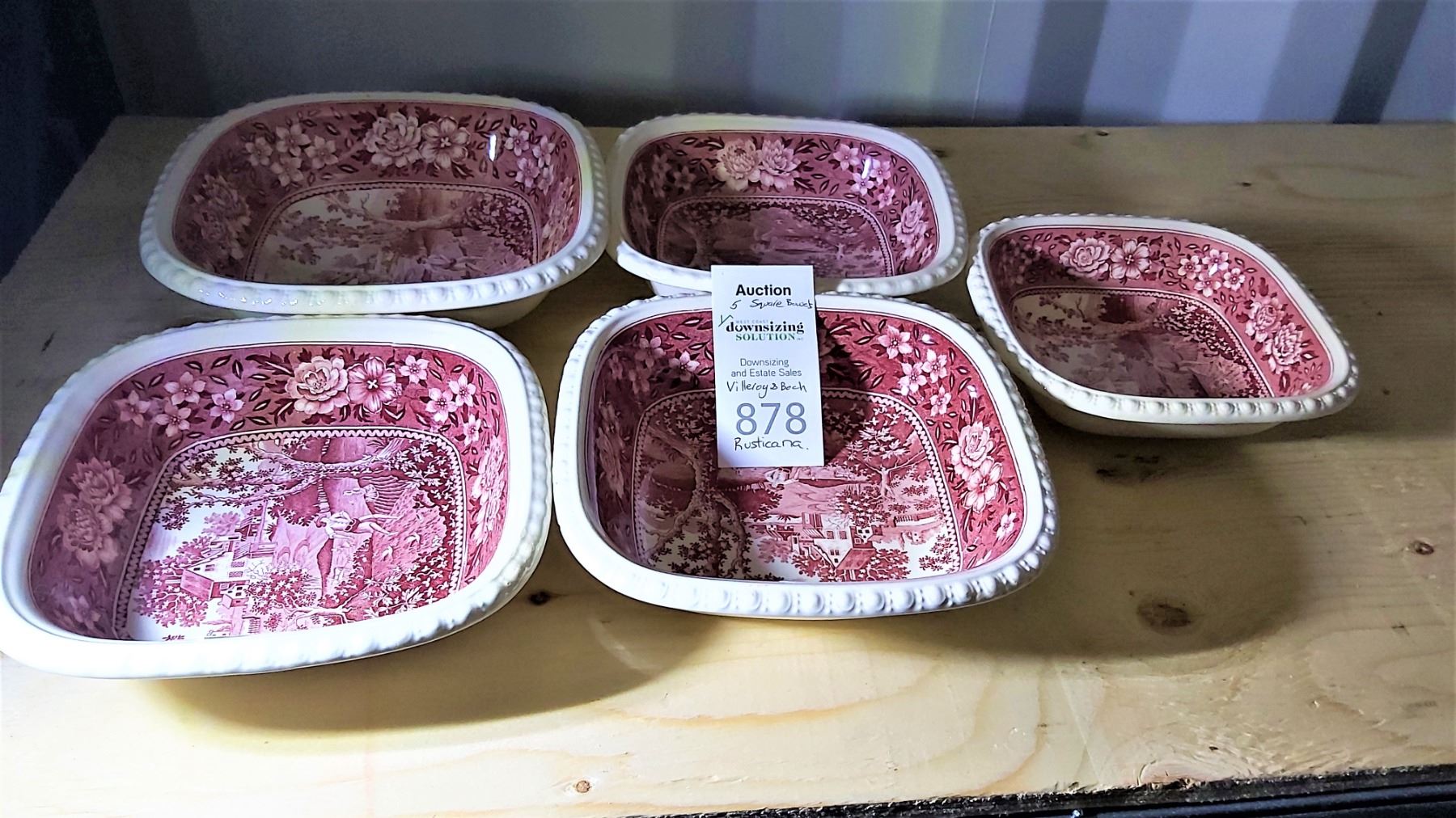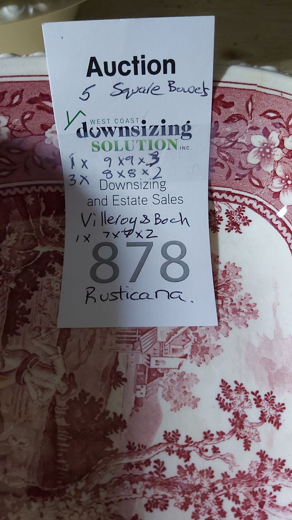 Rusticana pattern 9x9x3, 3 dishes 8x8x2, and 7x7x2 Bring packing materials and pickup at 9 am