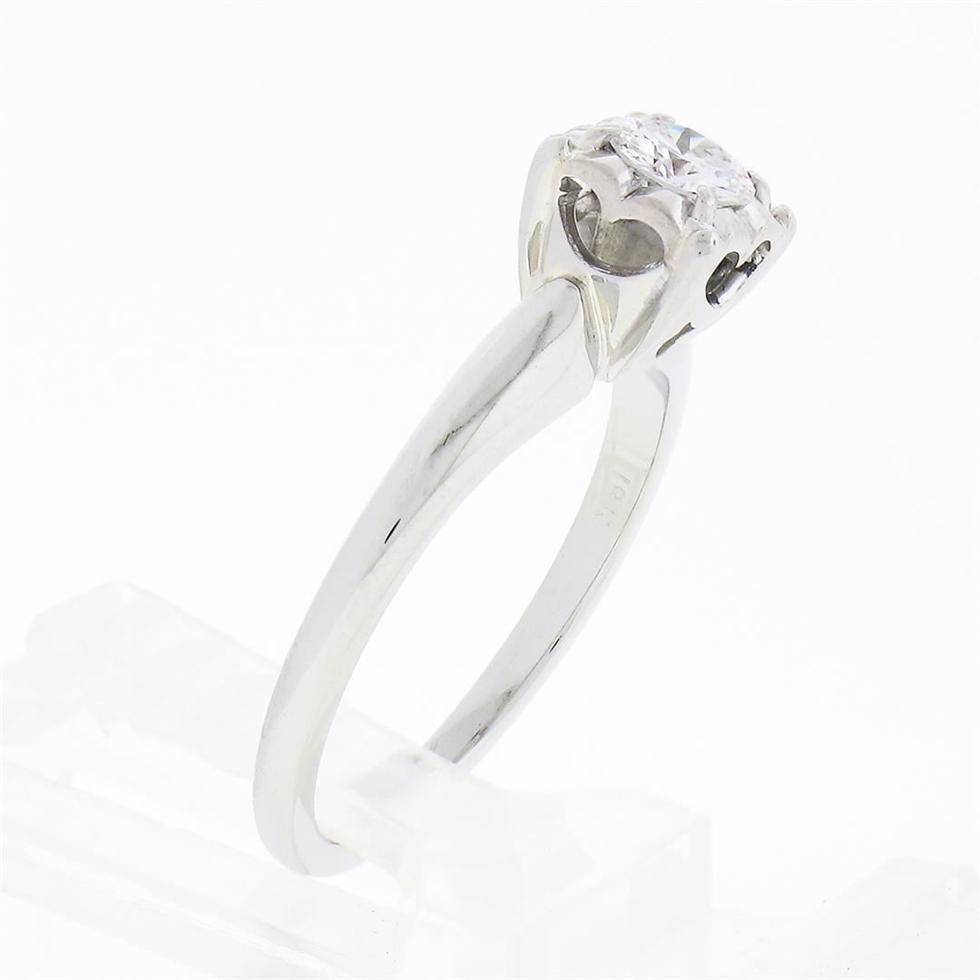 A vintage solid 14k white gold engagement ring, with 1 old transitional cut natural diamond (F - VS2 ; 0.32ct). The ring is size 5.0, weighs a total of 2.91 grams, and measures 5.9mm wide.
