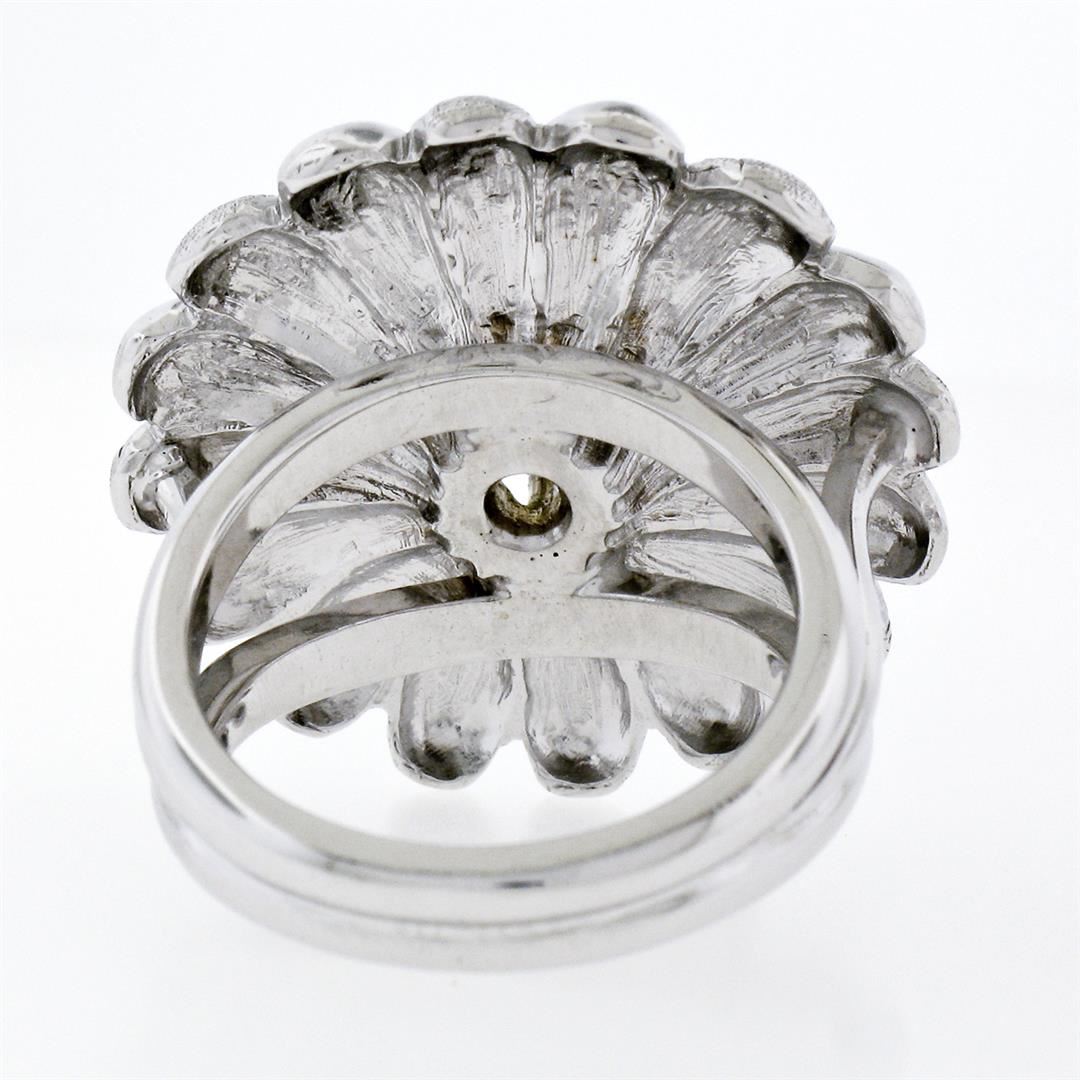 Vintage 18K White Gold.78ctw Round Brilliant Diamond Large Cocktail Flower Ring. Please see photos and description for all available information. a vintage soldi 18k white gold flower ring, with 1 round brilliant cut natural diamond (K/L- VS2; 0.78ct). The ring is size 5.5, weighs a total of 17.07 grams, and measures 23.85mm wide.