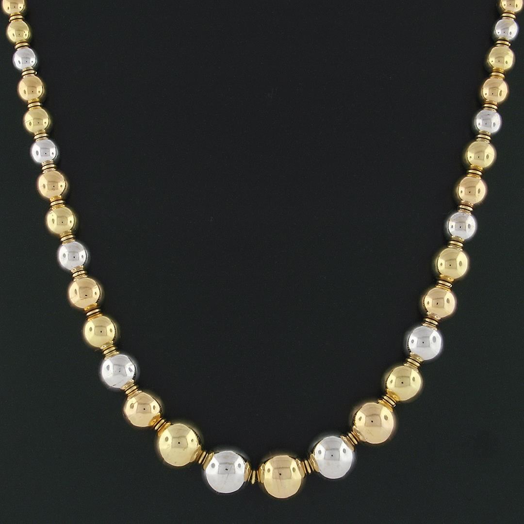 A vintage solid 18k yellow, rose & white gold necklace. 15.5 inch bead strand link chain, 67.90 grams total weight.