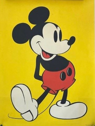Vintage Mickey Mouse on yellow background poster from the 70s. Inspired by a 1932 Disney illustration. Condition: good. Rolled. 28"x20".