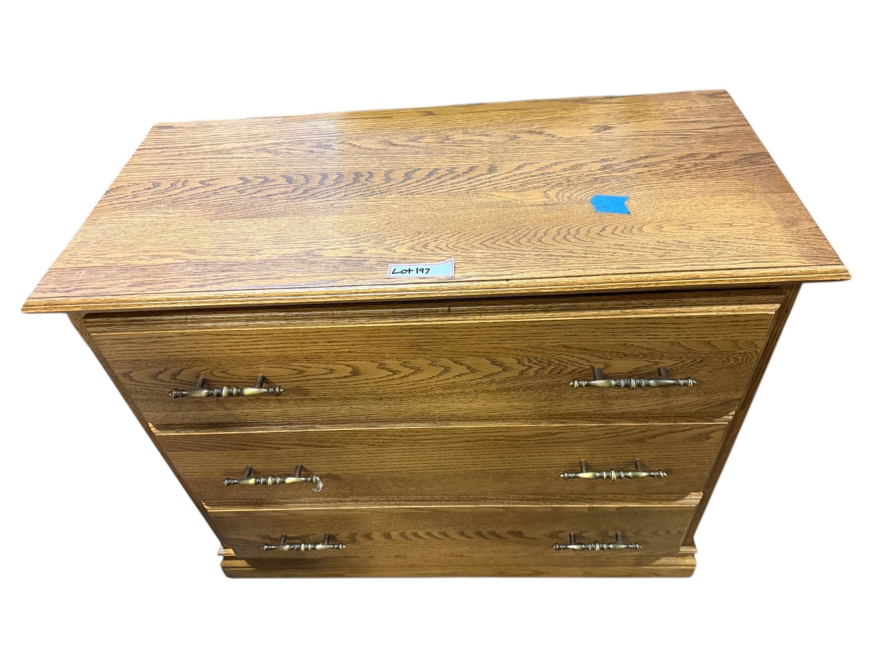 Vintage 3-Drawer Oak Dresser – Brass-Tone Handles - approx 3ft x 17" x 30" H