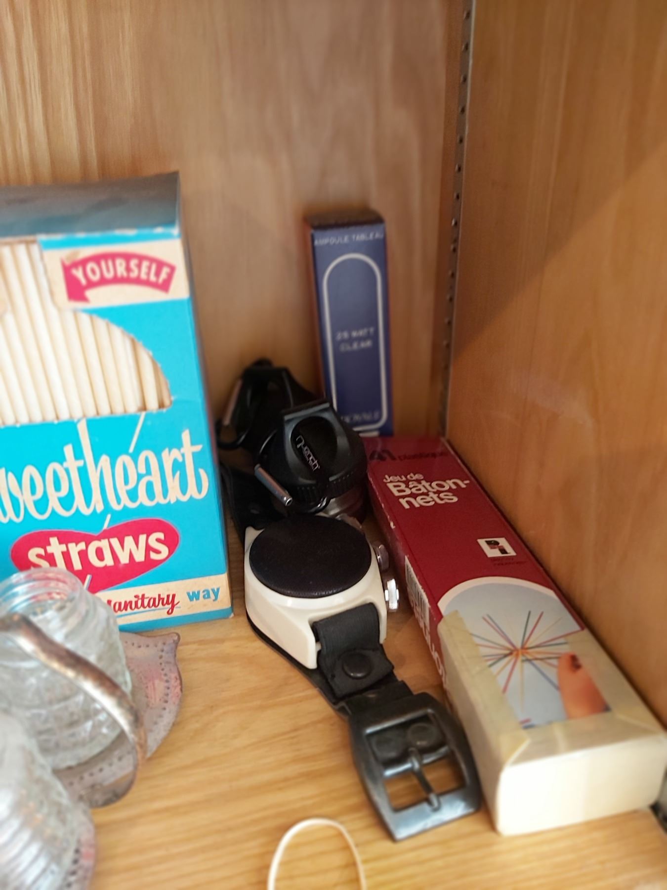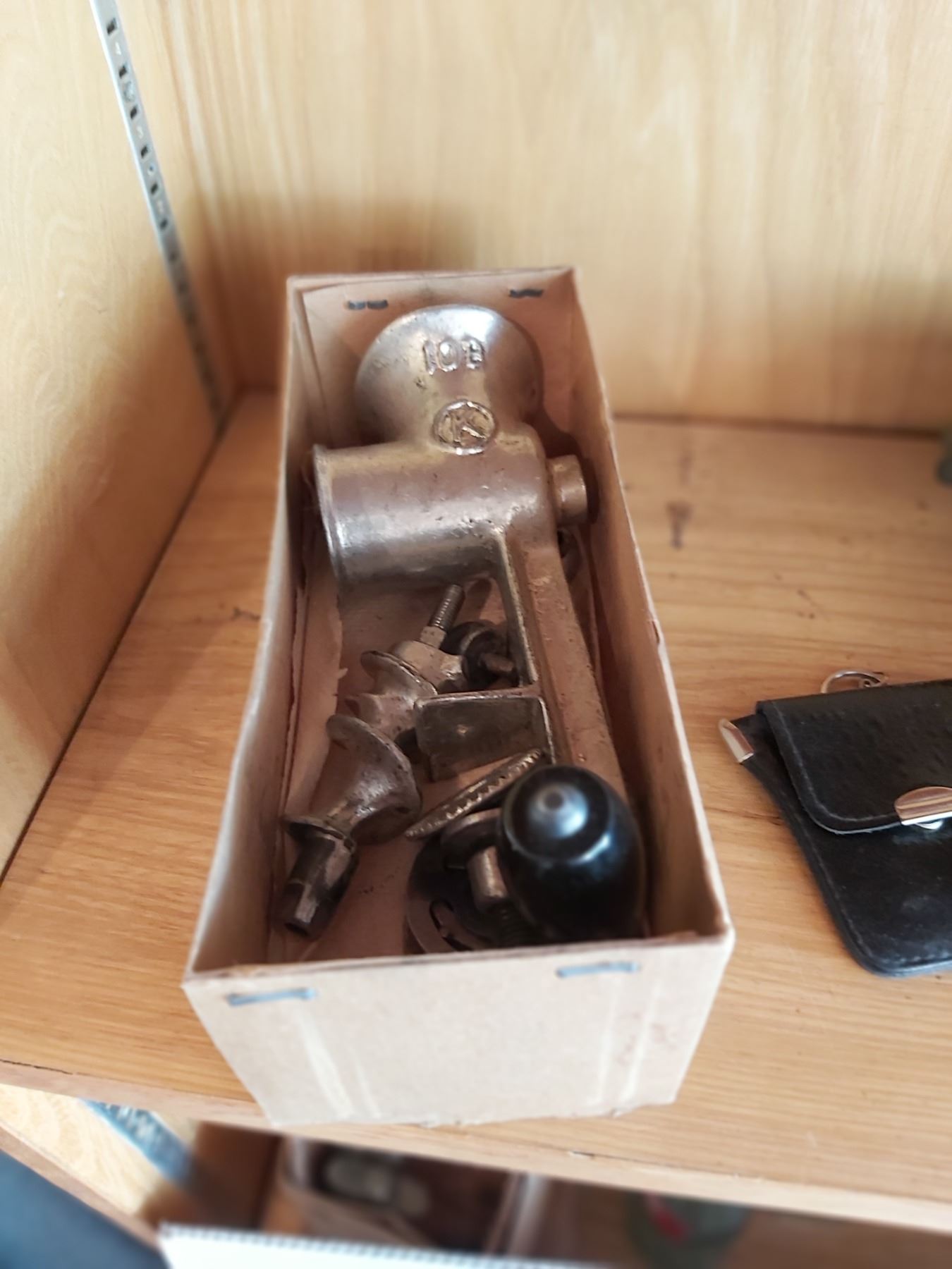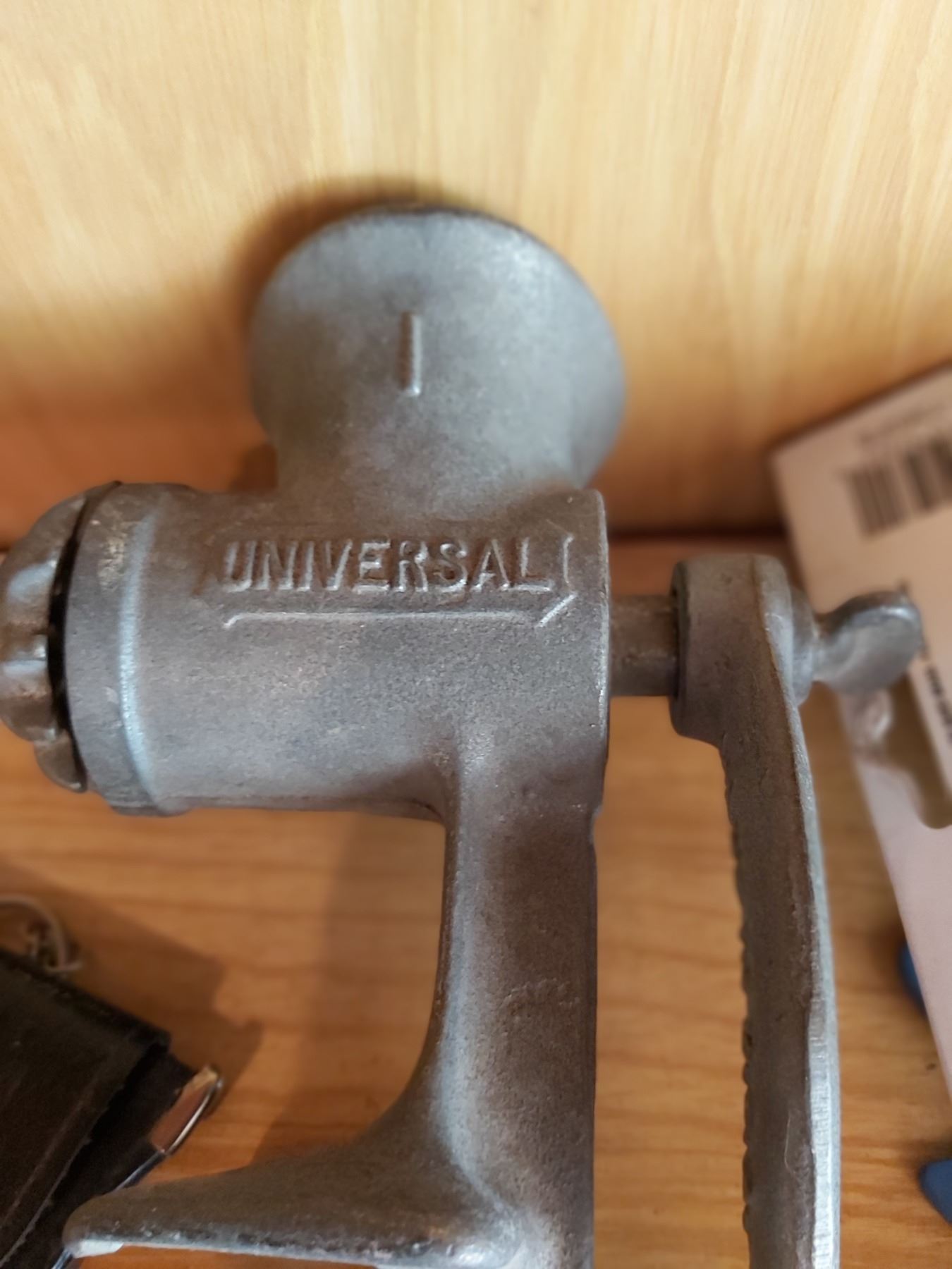 Lot includes 2 meat grinders, bar sign, straws, 3 salt and pepper shakers, and more. Pickup 9 am cat. A.