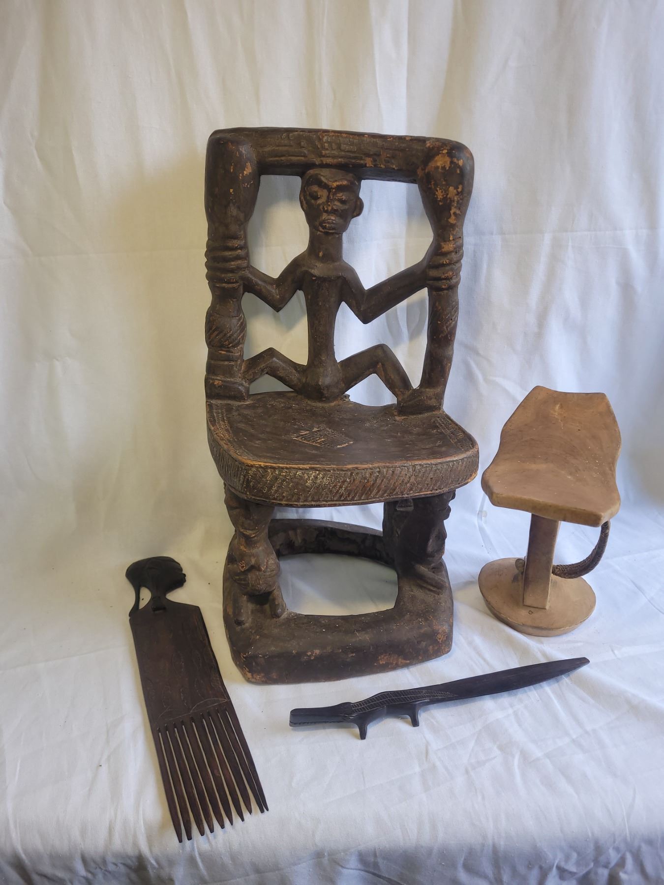 Vintage hand crafted African Chair 16". Head rest and comb. Pickup at 9 am