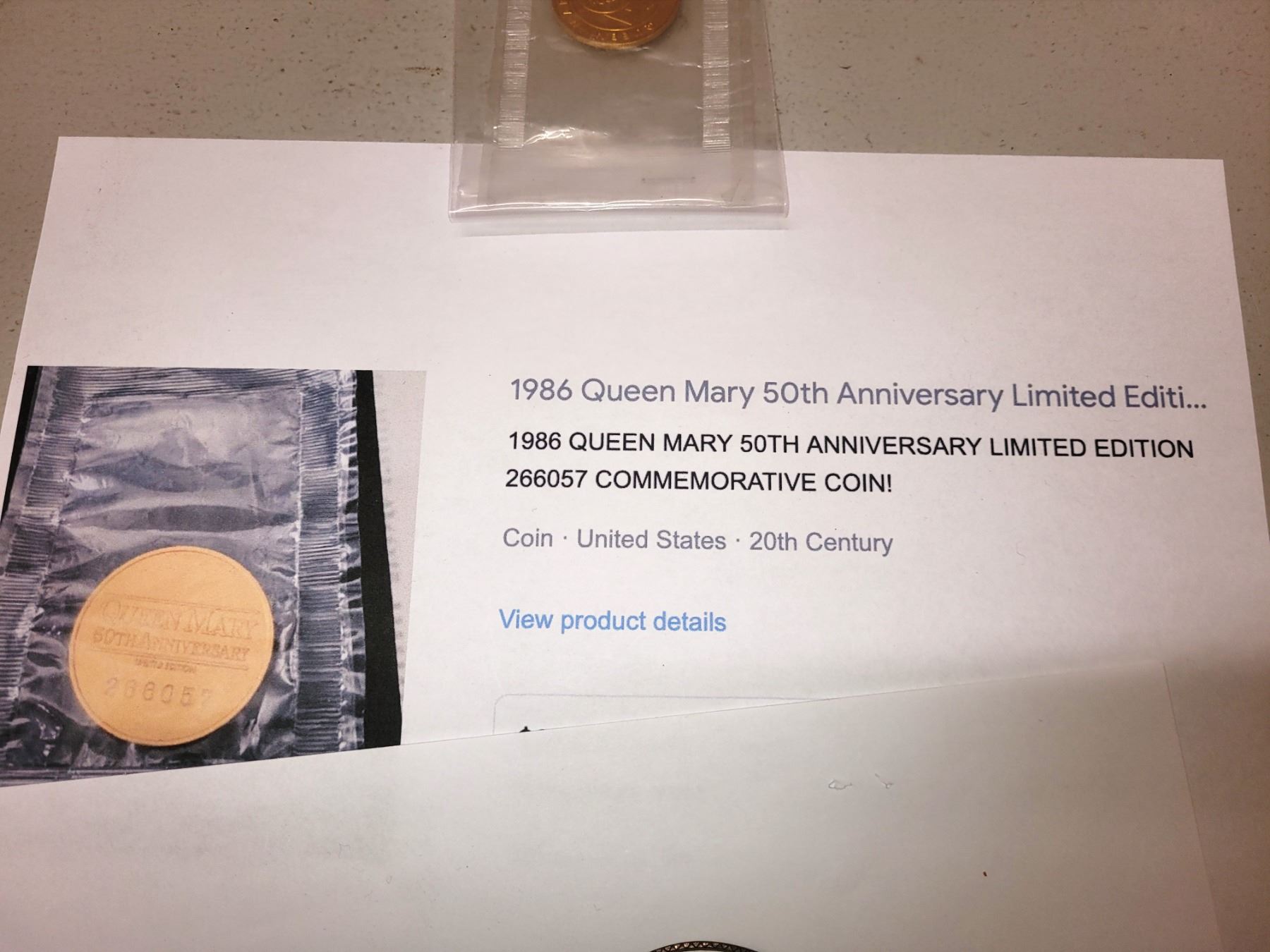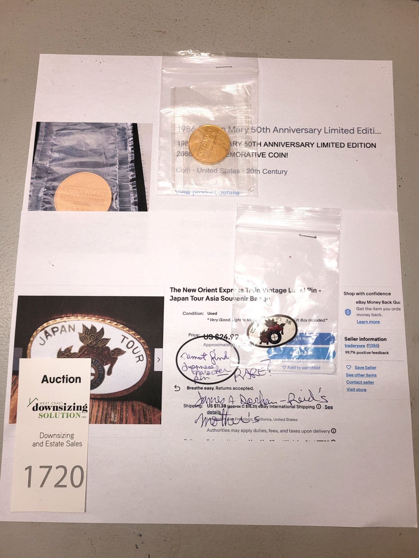 Orient Express Pin and Queen Mary Coin. Pick up 9-12:30.