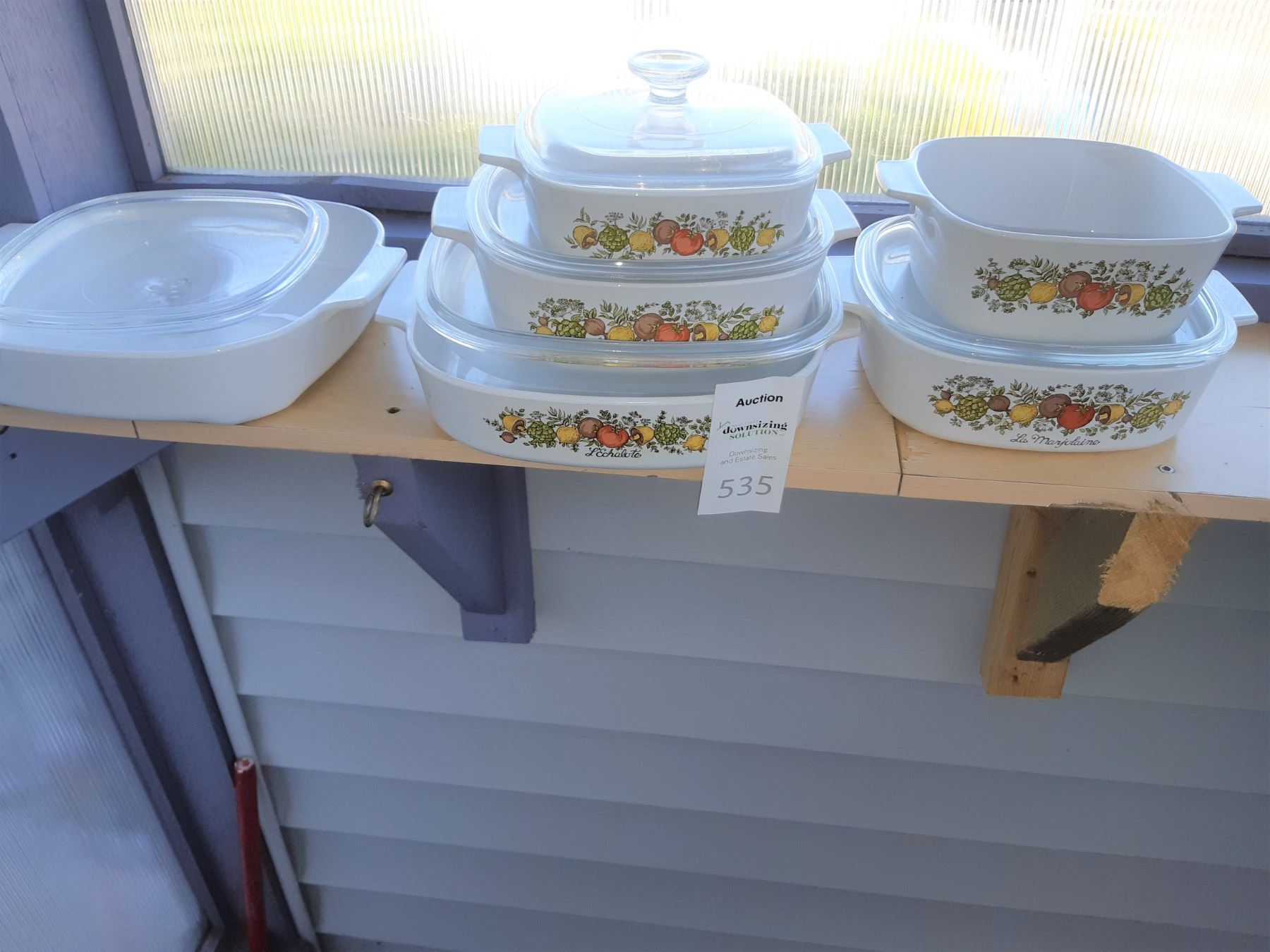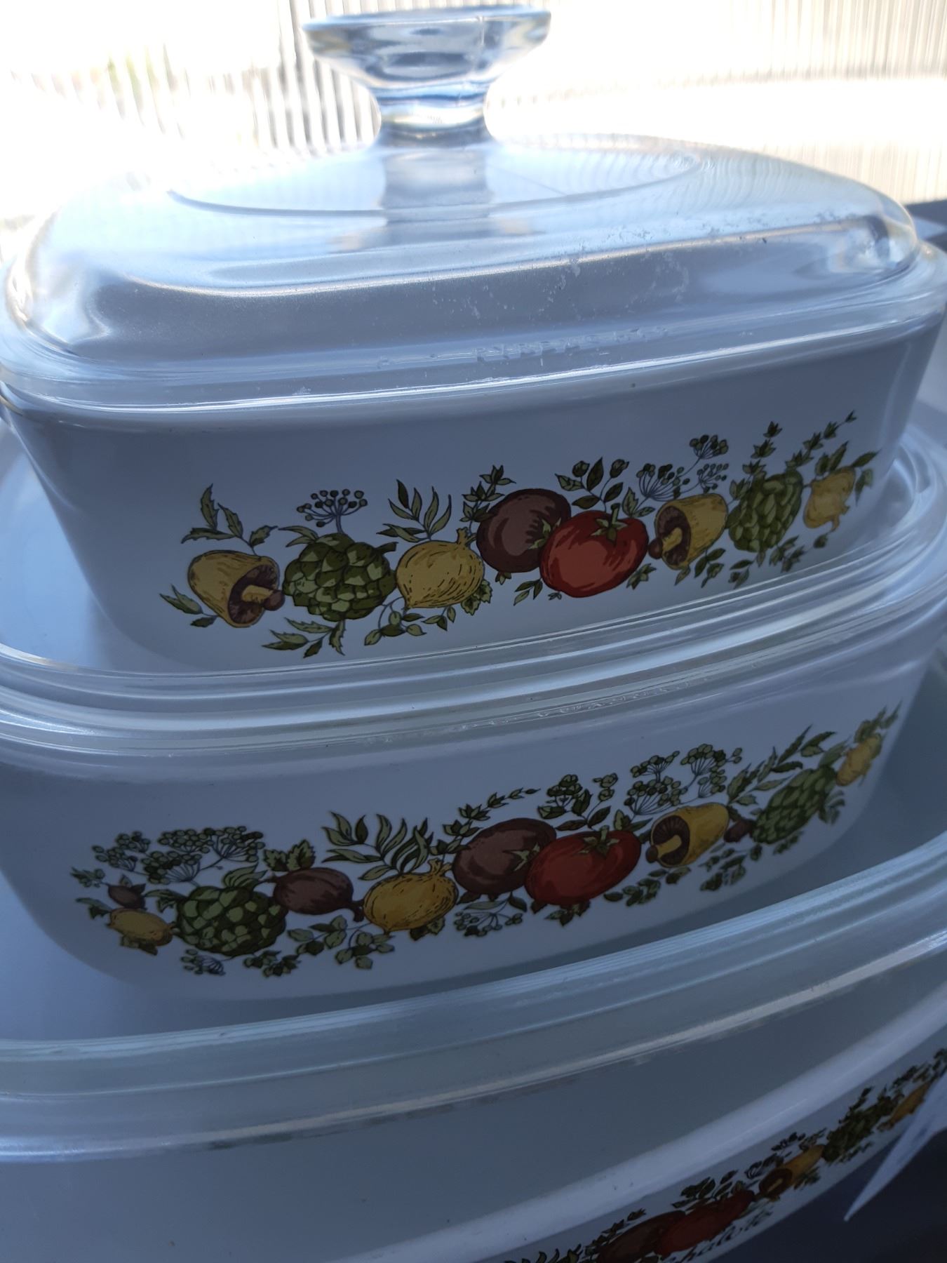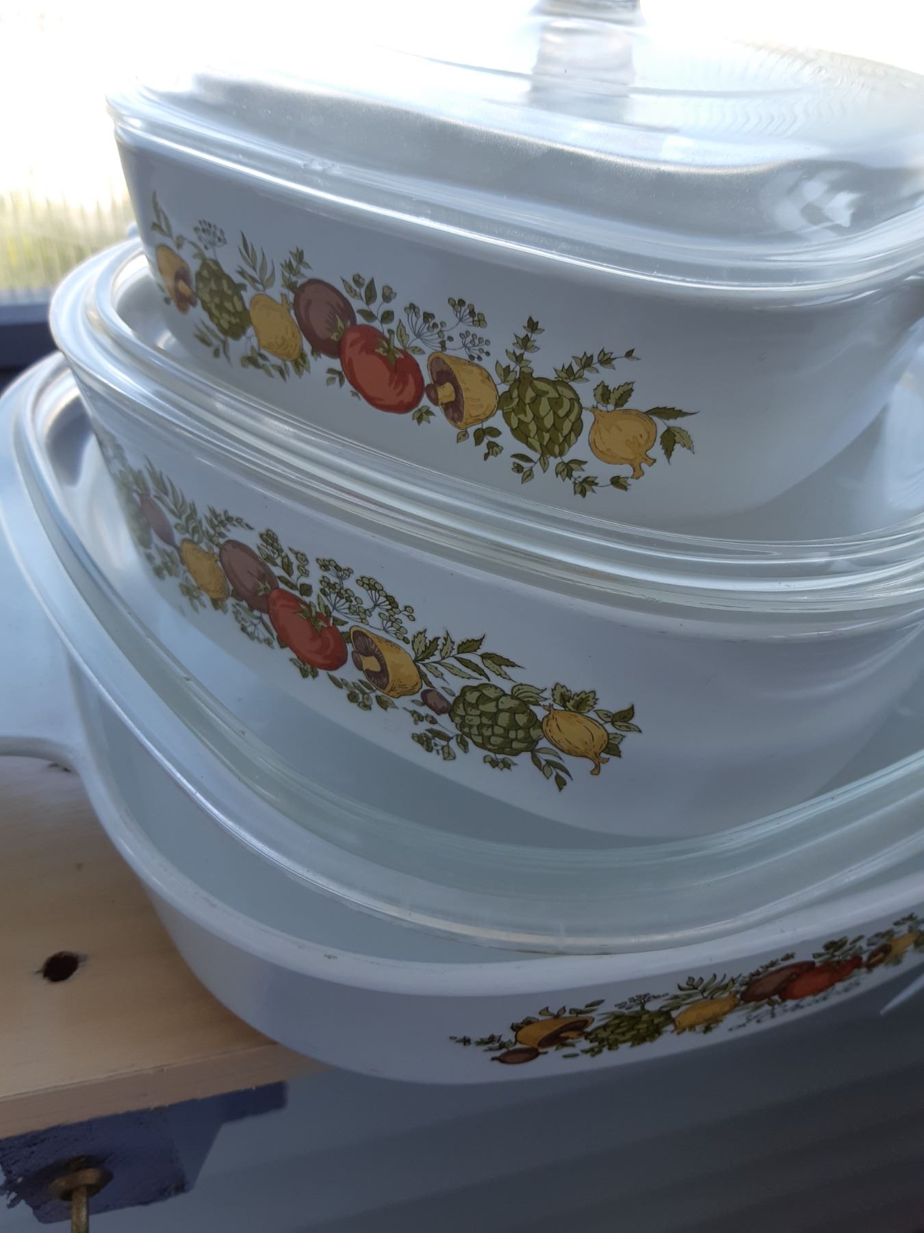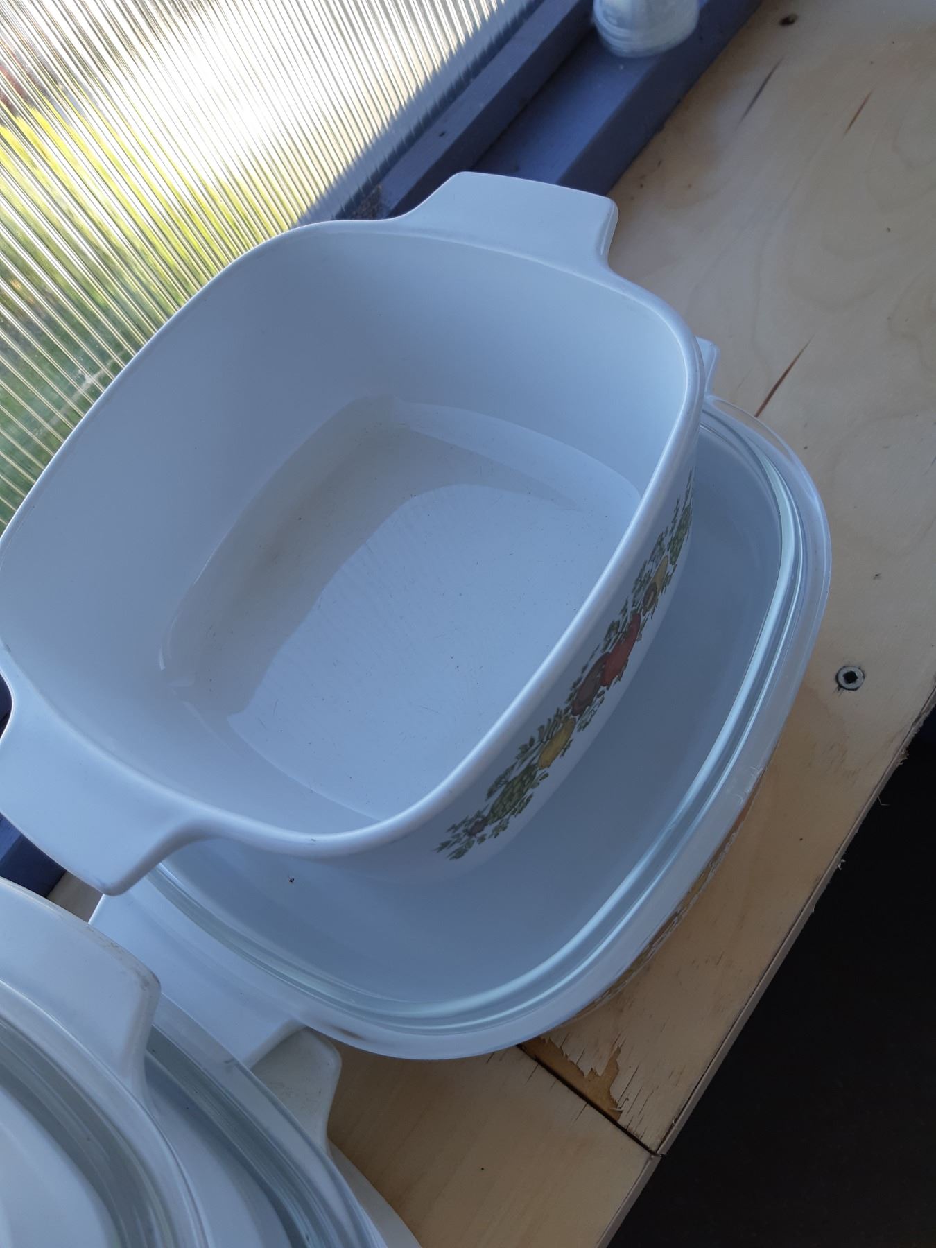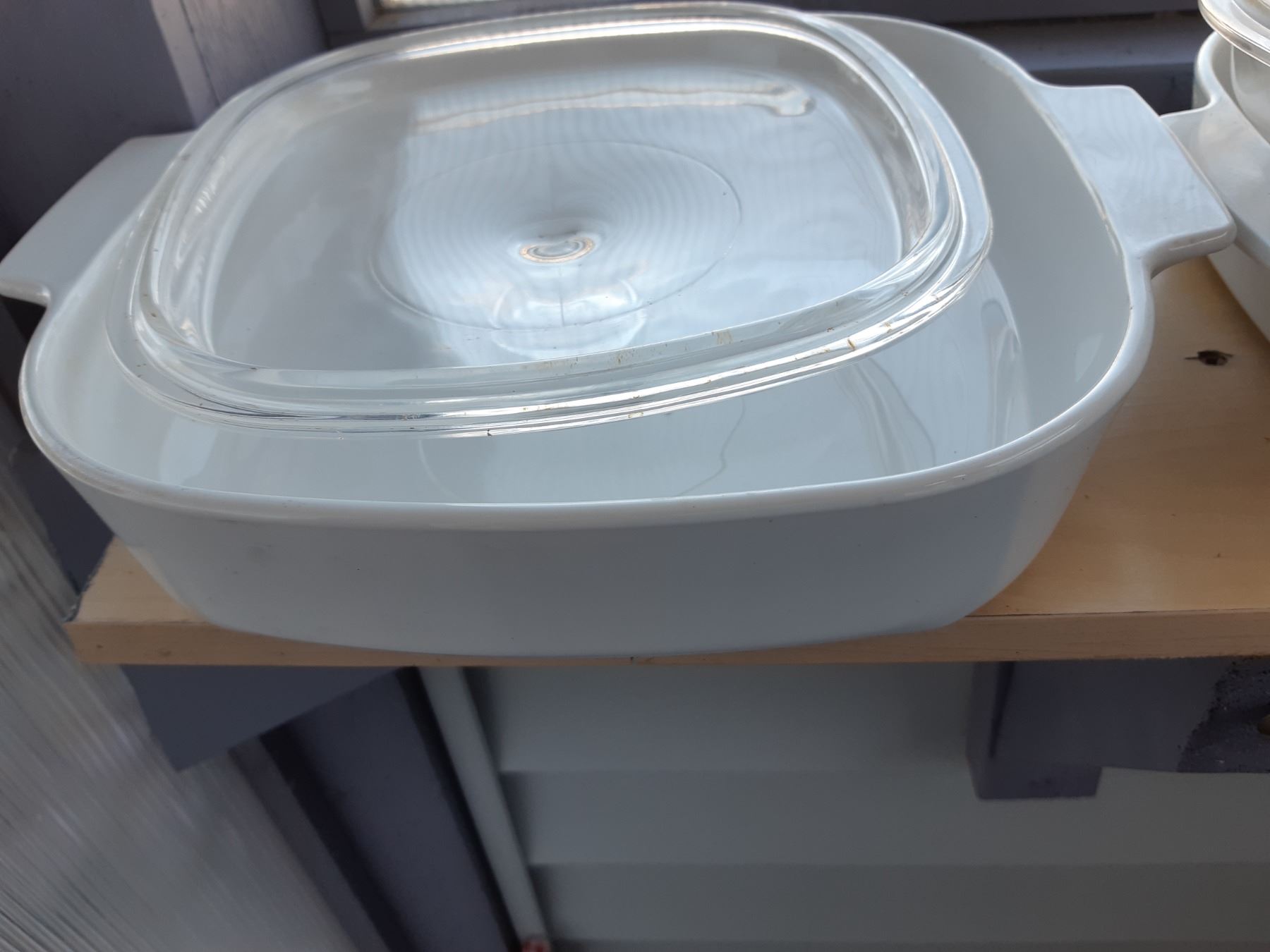 Set of Corning casserole most have lids. Pickup at 9 am