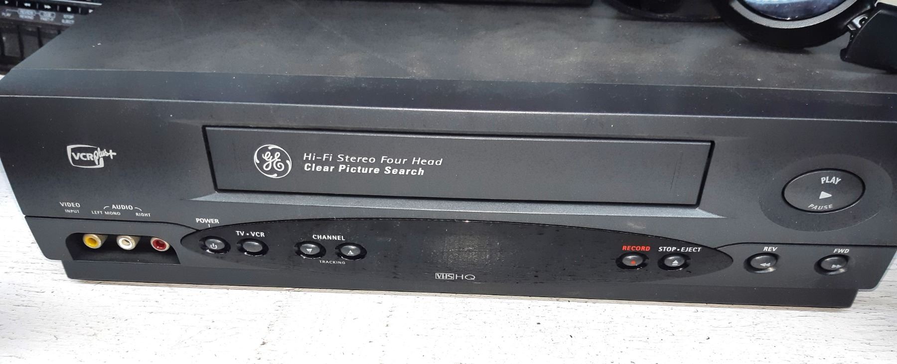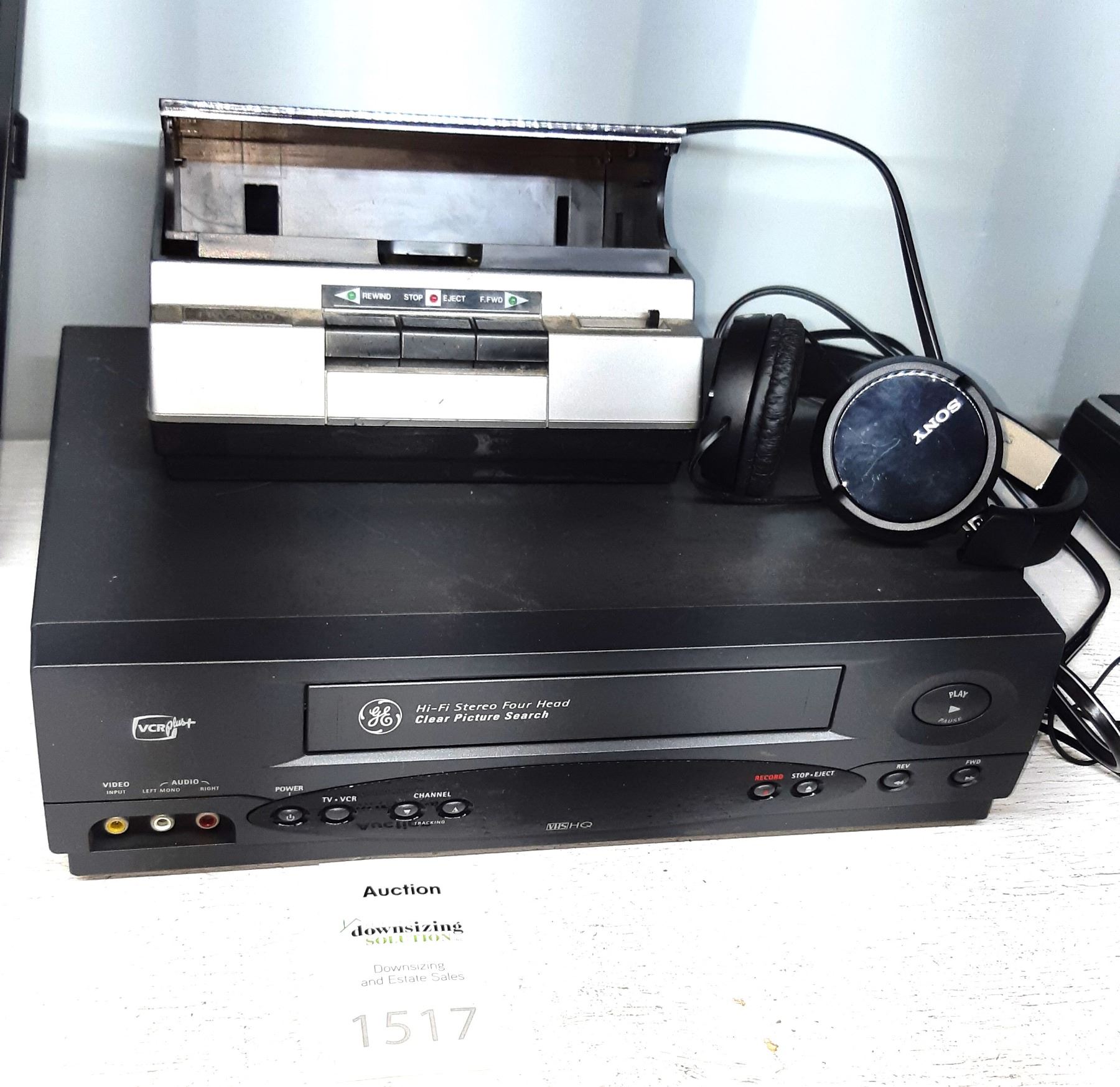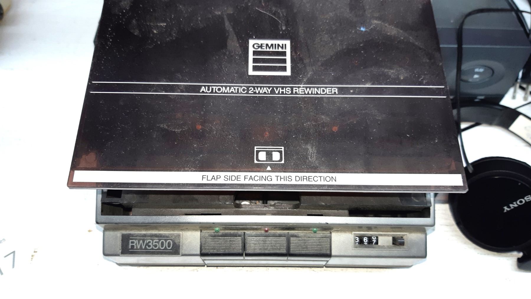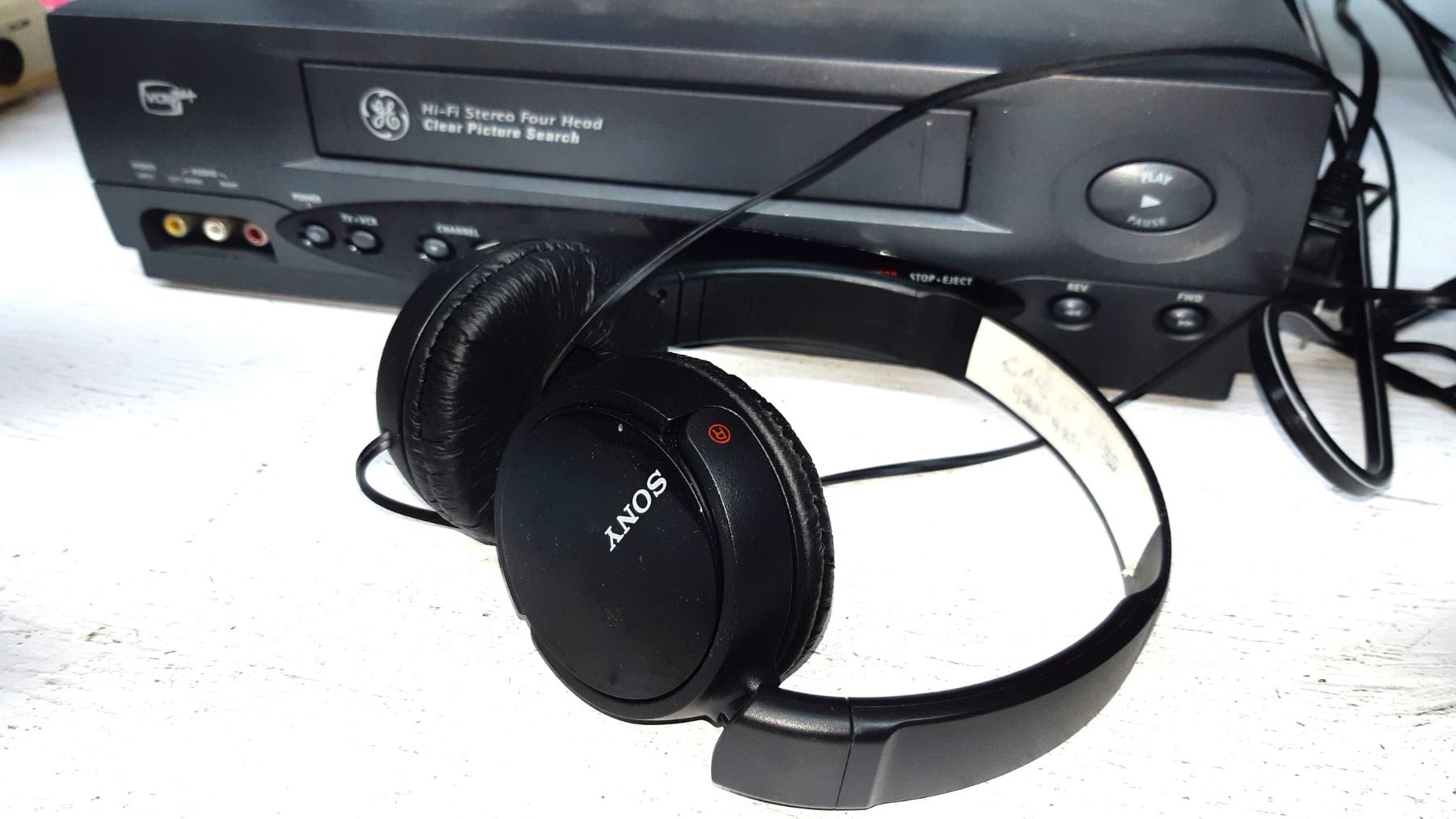 VCR player GE, Sony Head phones, Gemini 2 way vhs rewinder. Untested pickup at 10 am