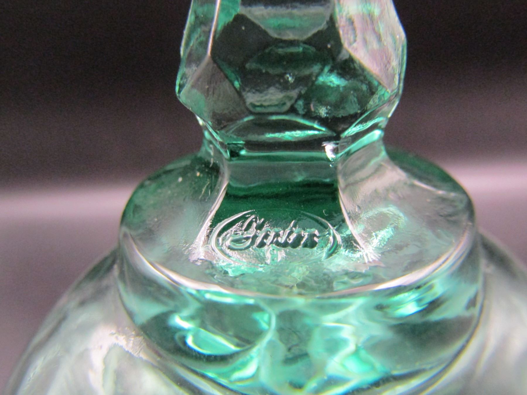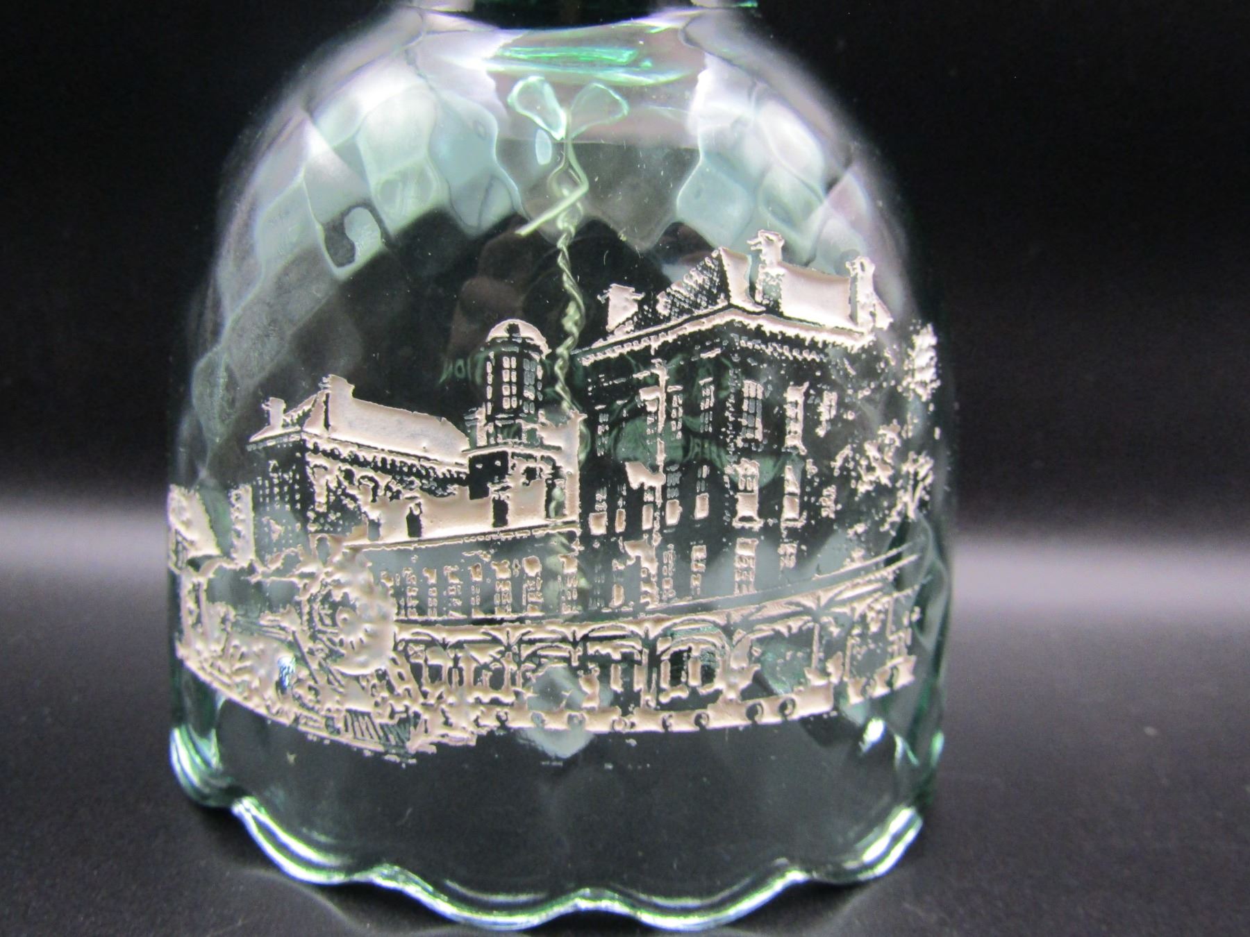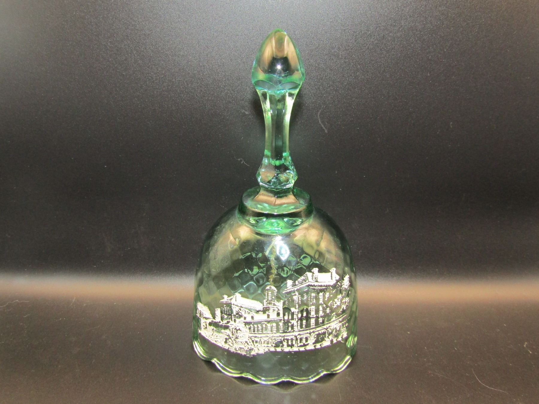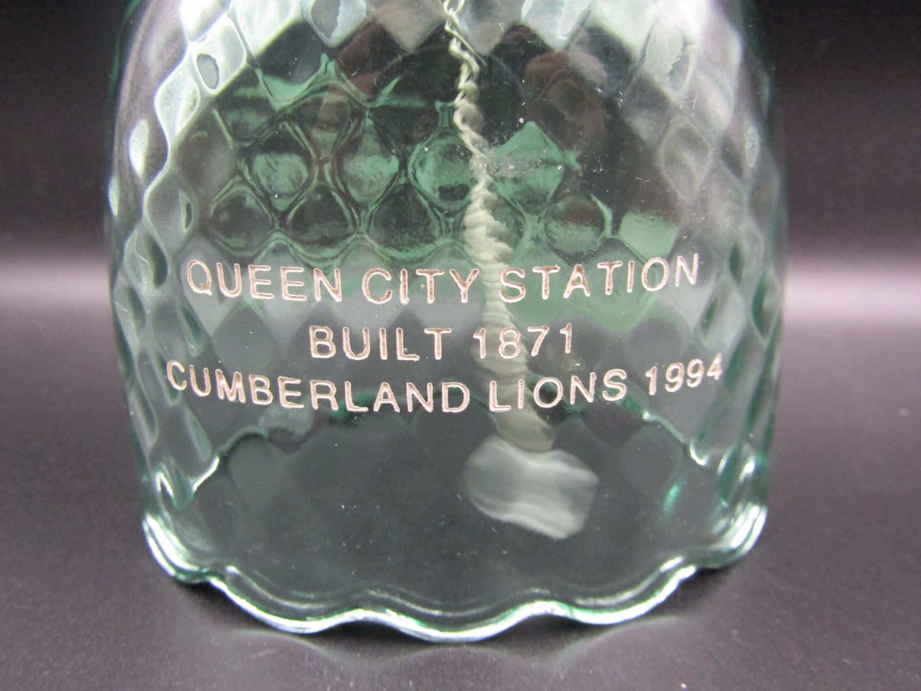 Vintage Fenton Hand Painted and Signed Green Bell. Queen City Station Build 1871, Cumberland Lions 1994