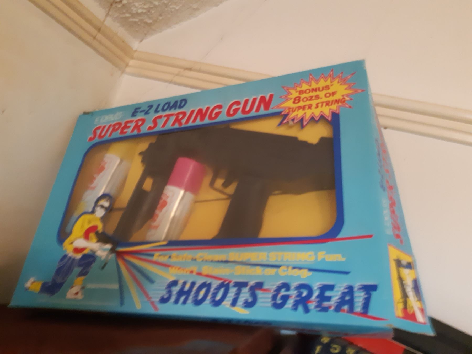 Assortment of vintage games. Super String Gun. Conditions unknown. Bring packing and pickup at 12 pm