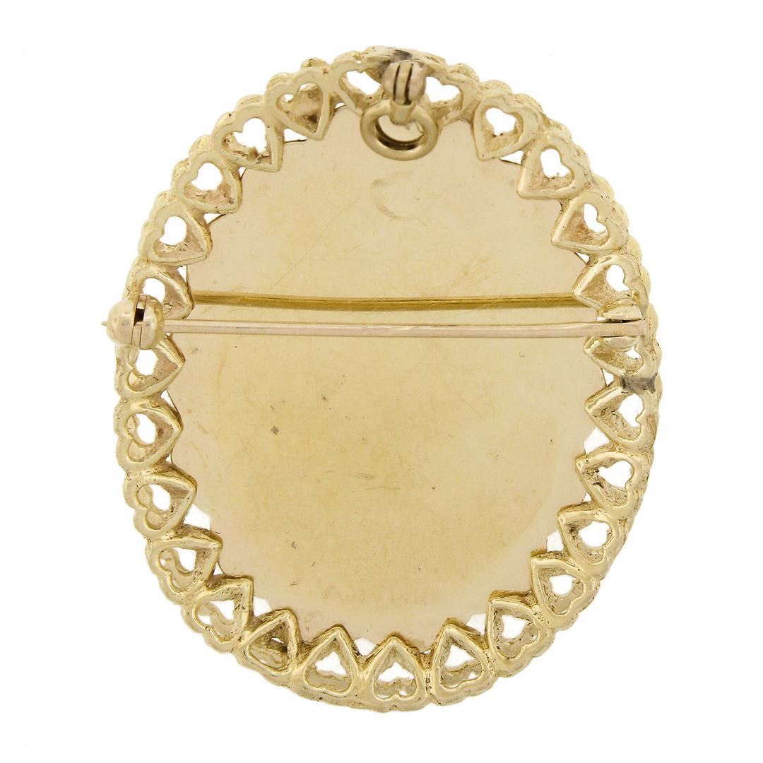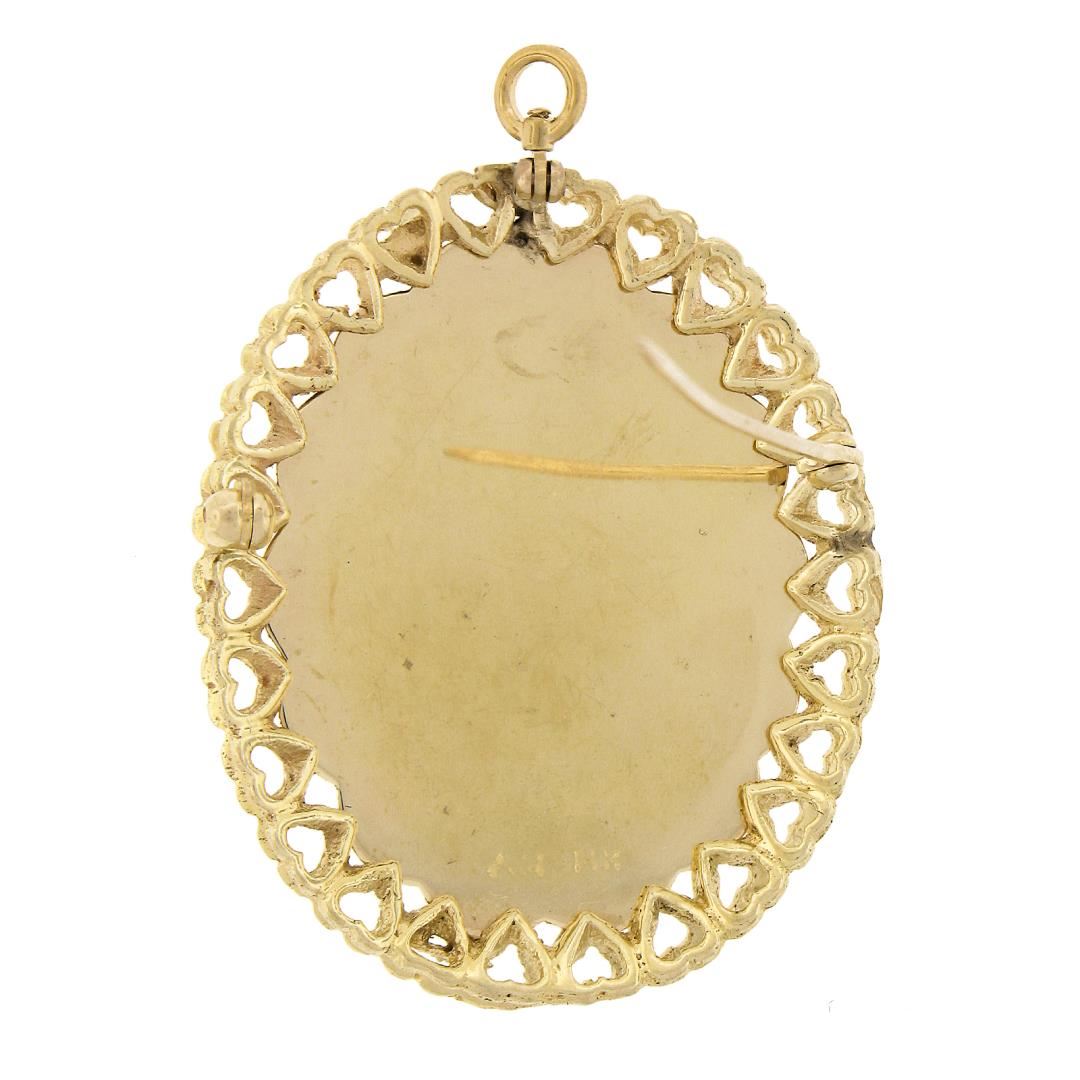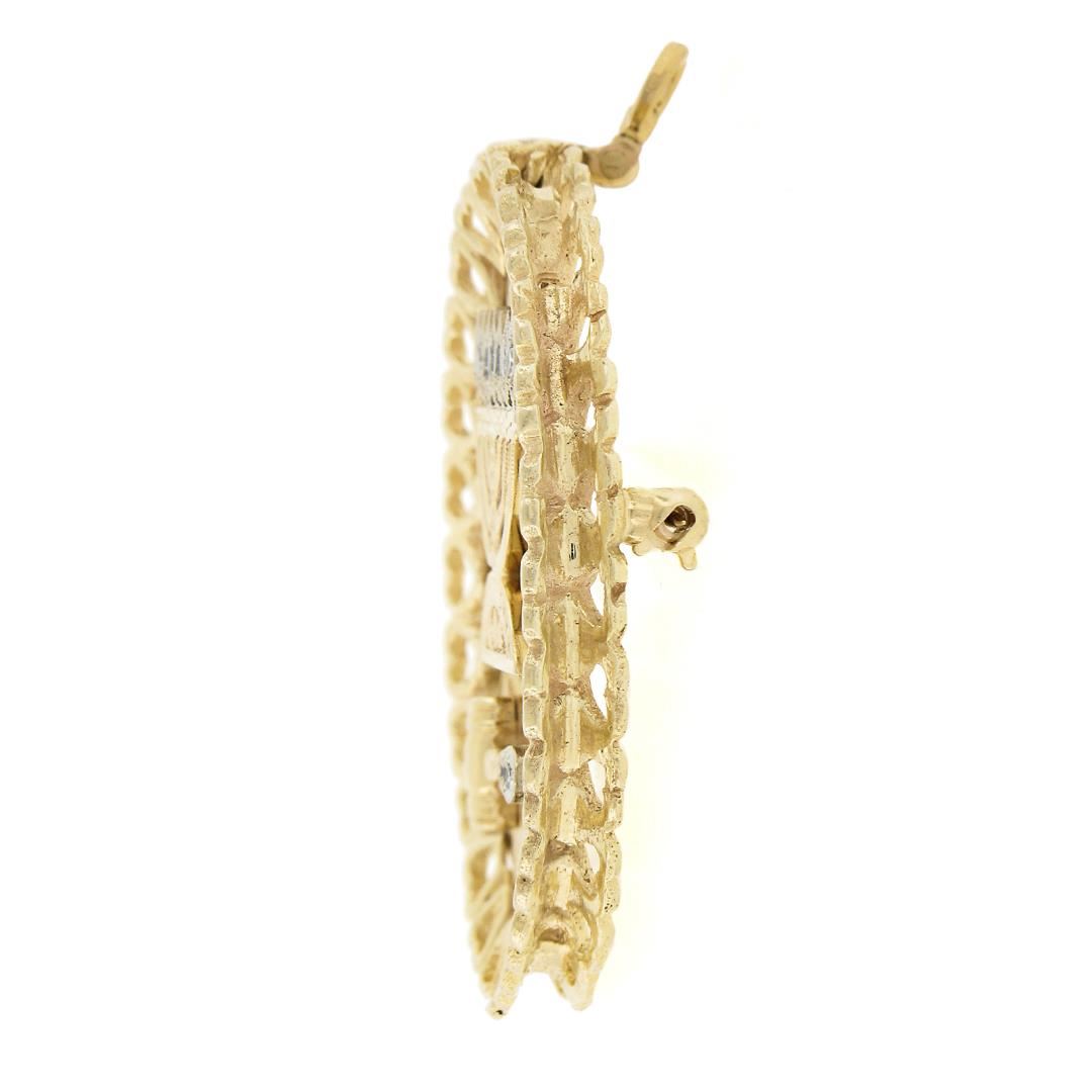 A solid 14k yellow gold brooch pendant, with 10 old single cut natural diamonds (H/I - SI1-I1 ; 0.15ctw). Measures 39.1x31.9mm and weighs a total of 12.35 grams.