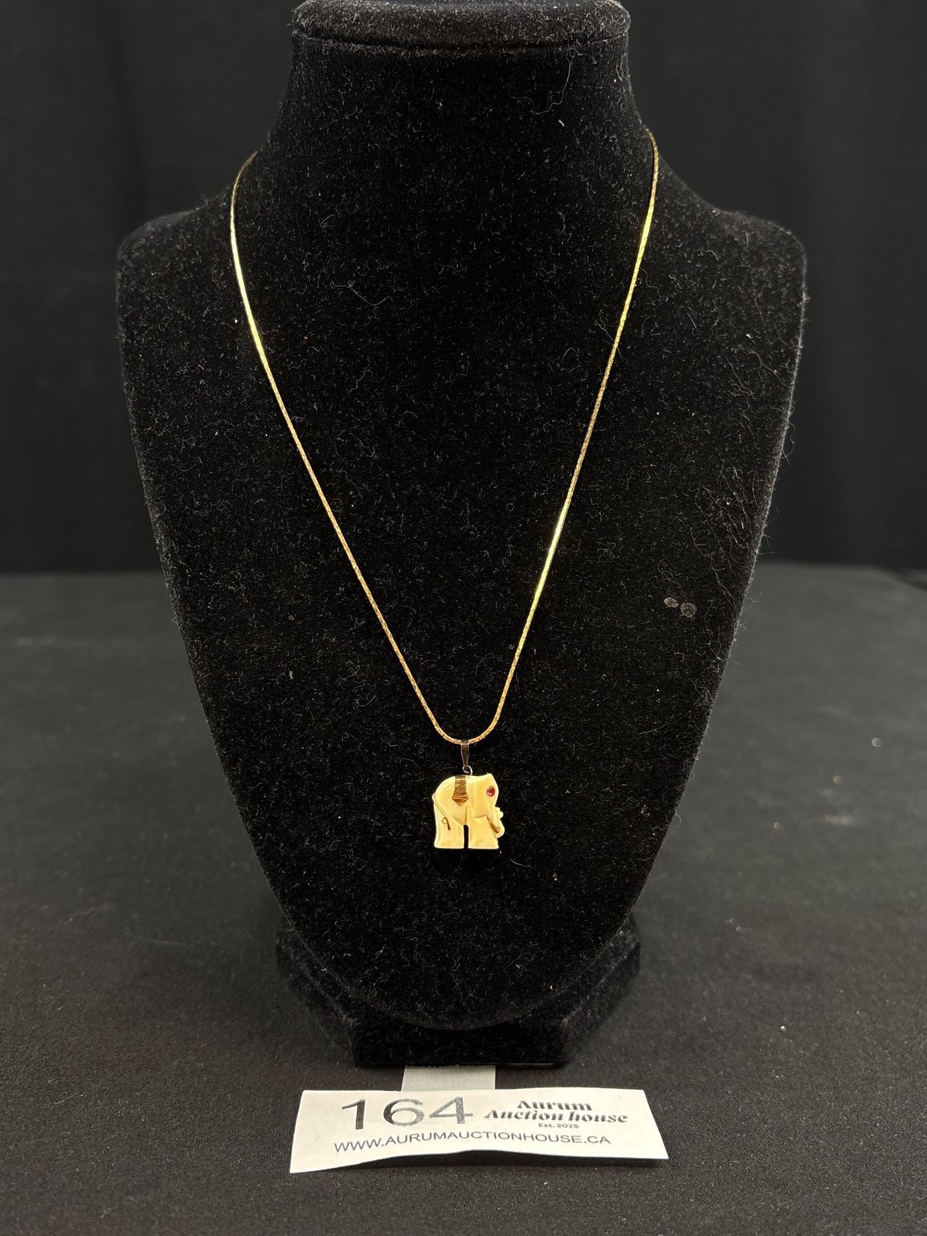 Vintage Gold Ruby Elephant Necklace Lovely!