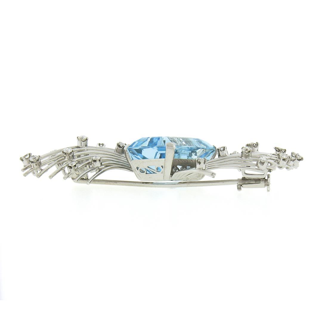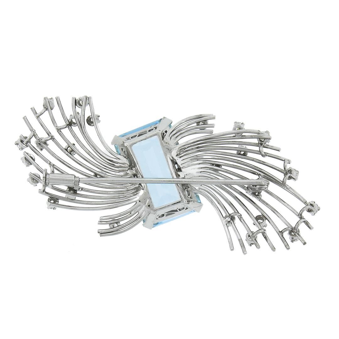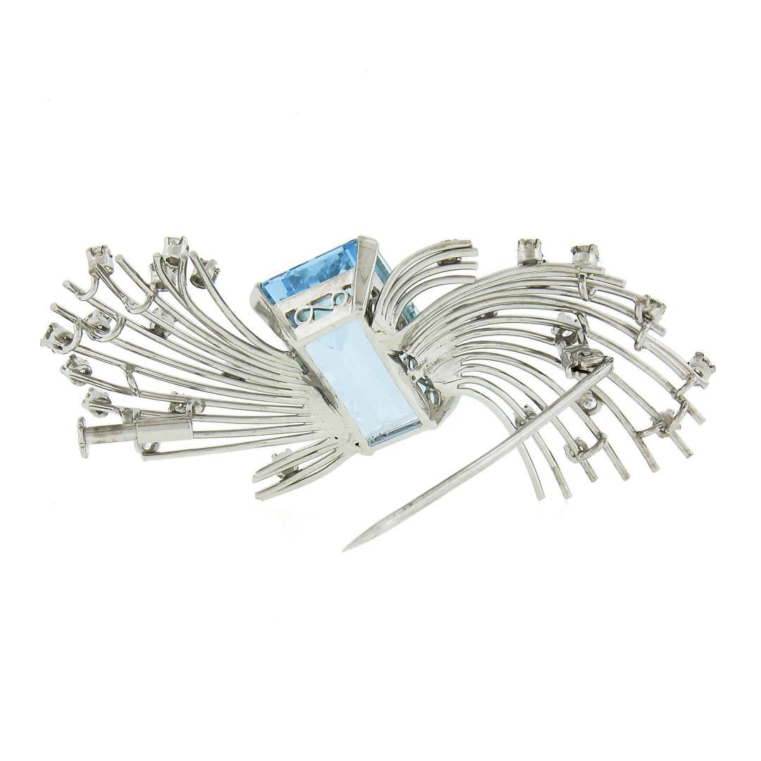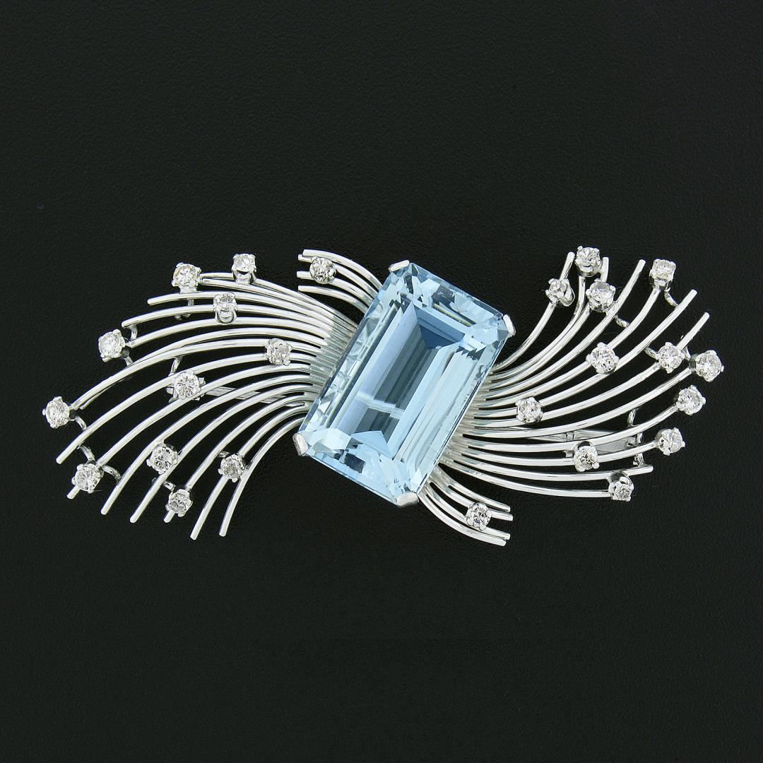 A vintage handmade platinum brooch, with 1 GIA graded emerald cut natural aquamarine (19.65ct ), and 25 old European & old single cut natural diamonds (G/J - SI1-I2 ; 0.85ctw). Measures 38.6x64.1mm and weighs a total of 19.79 grams. Comes with all original relevant certifications