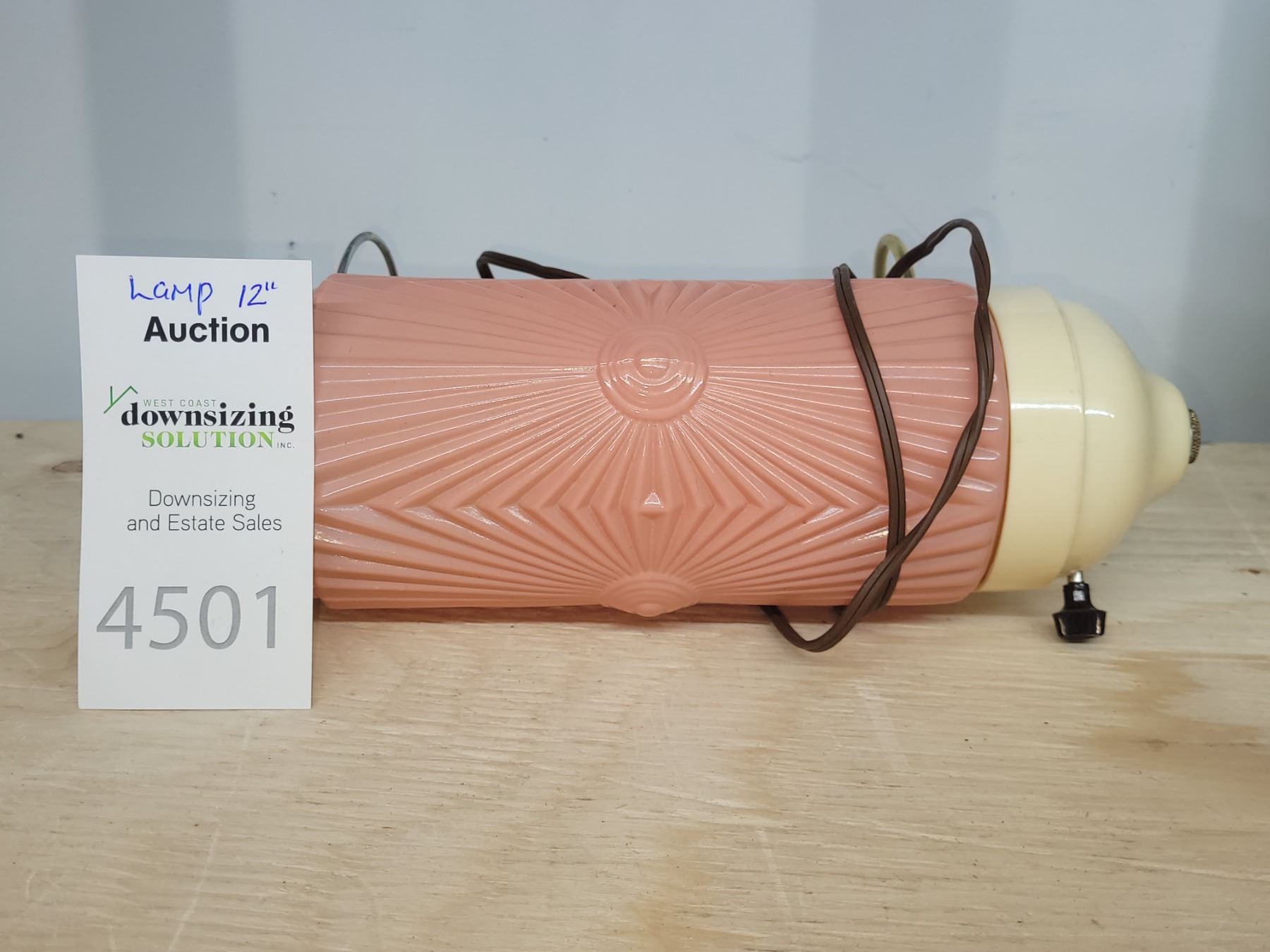 Untested lamp, 12" wide. Hooks over a door or hanging. Pickup at 9 am