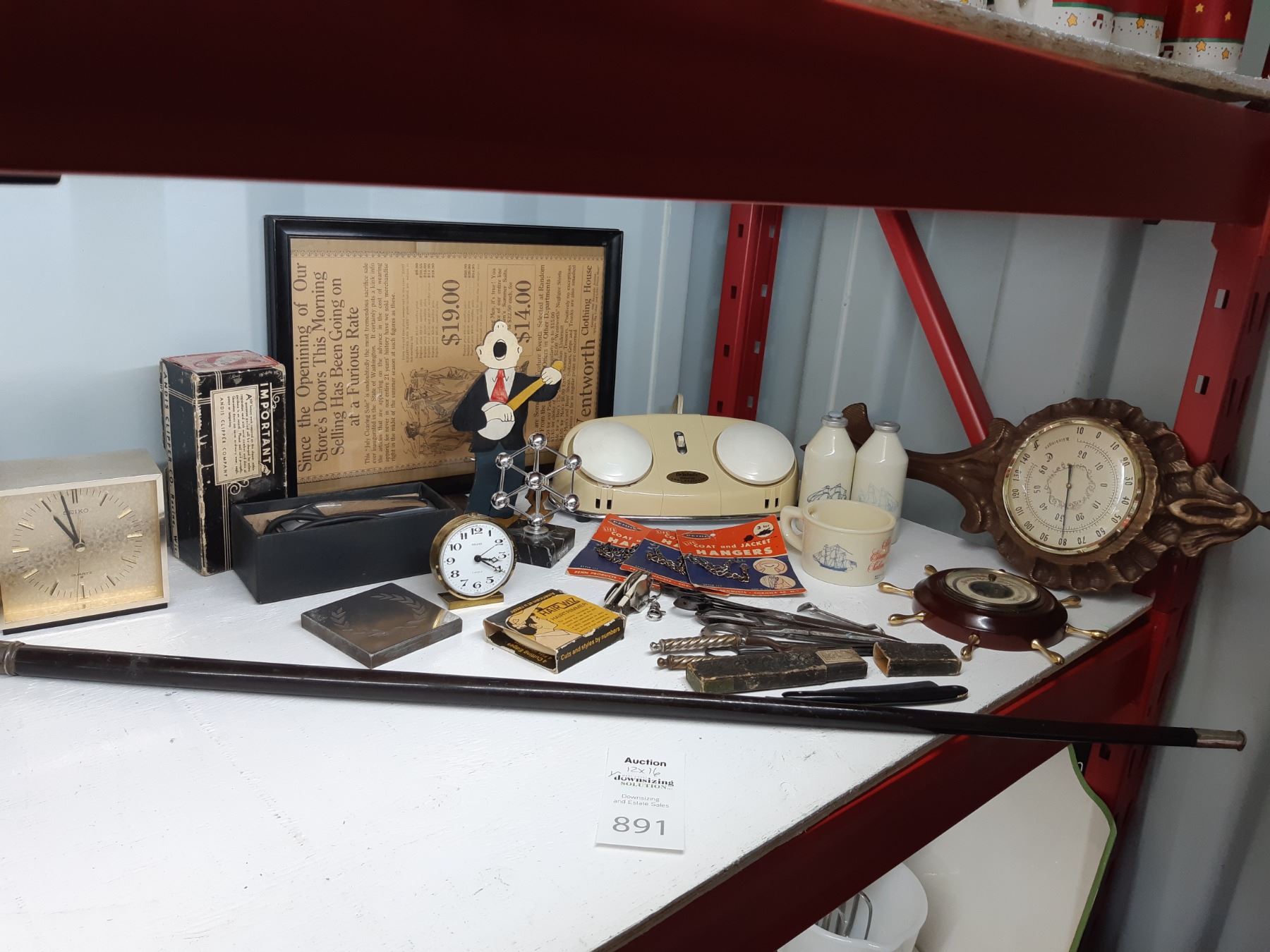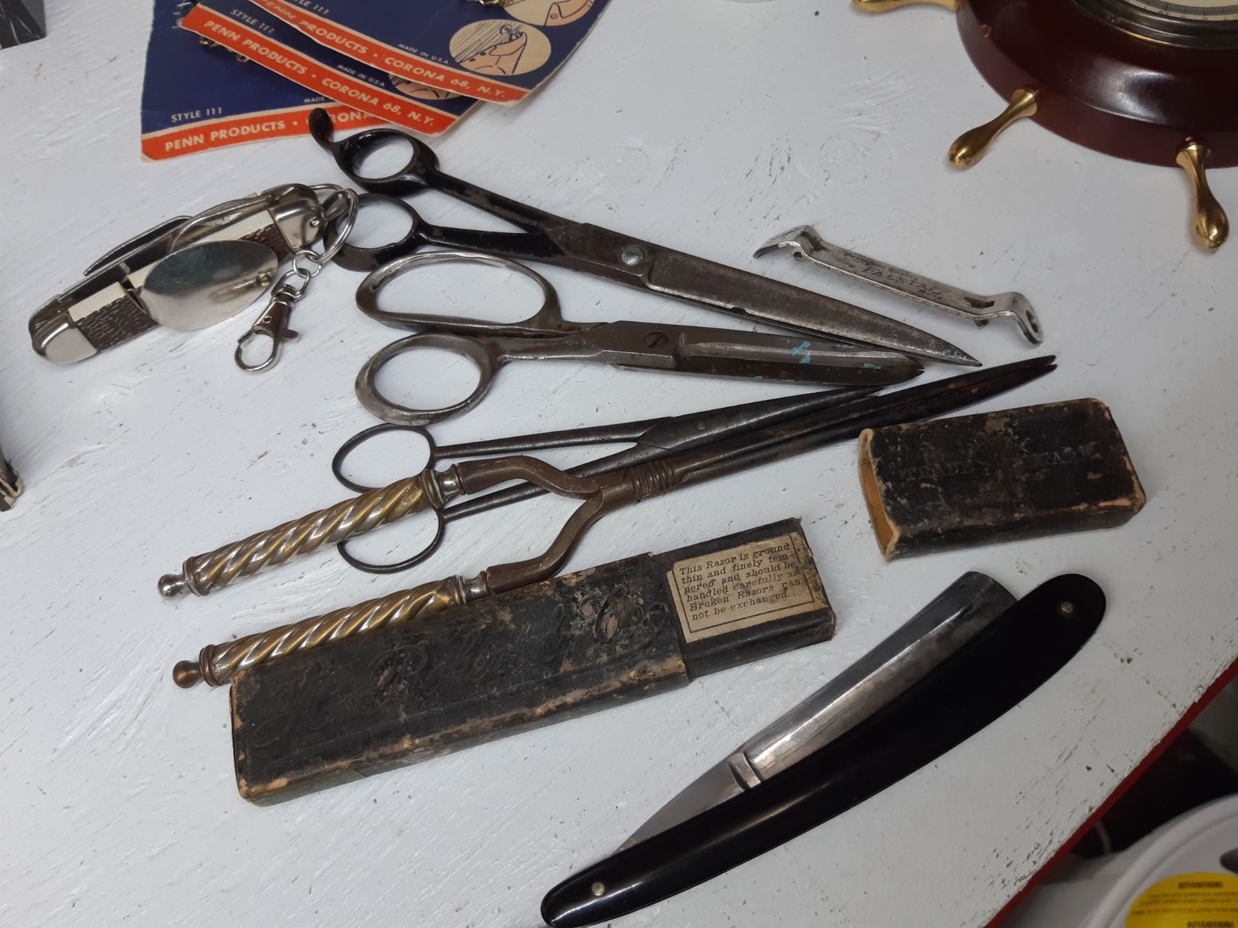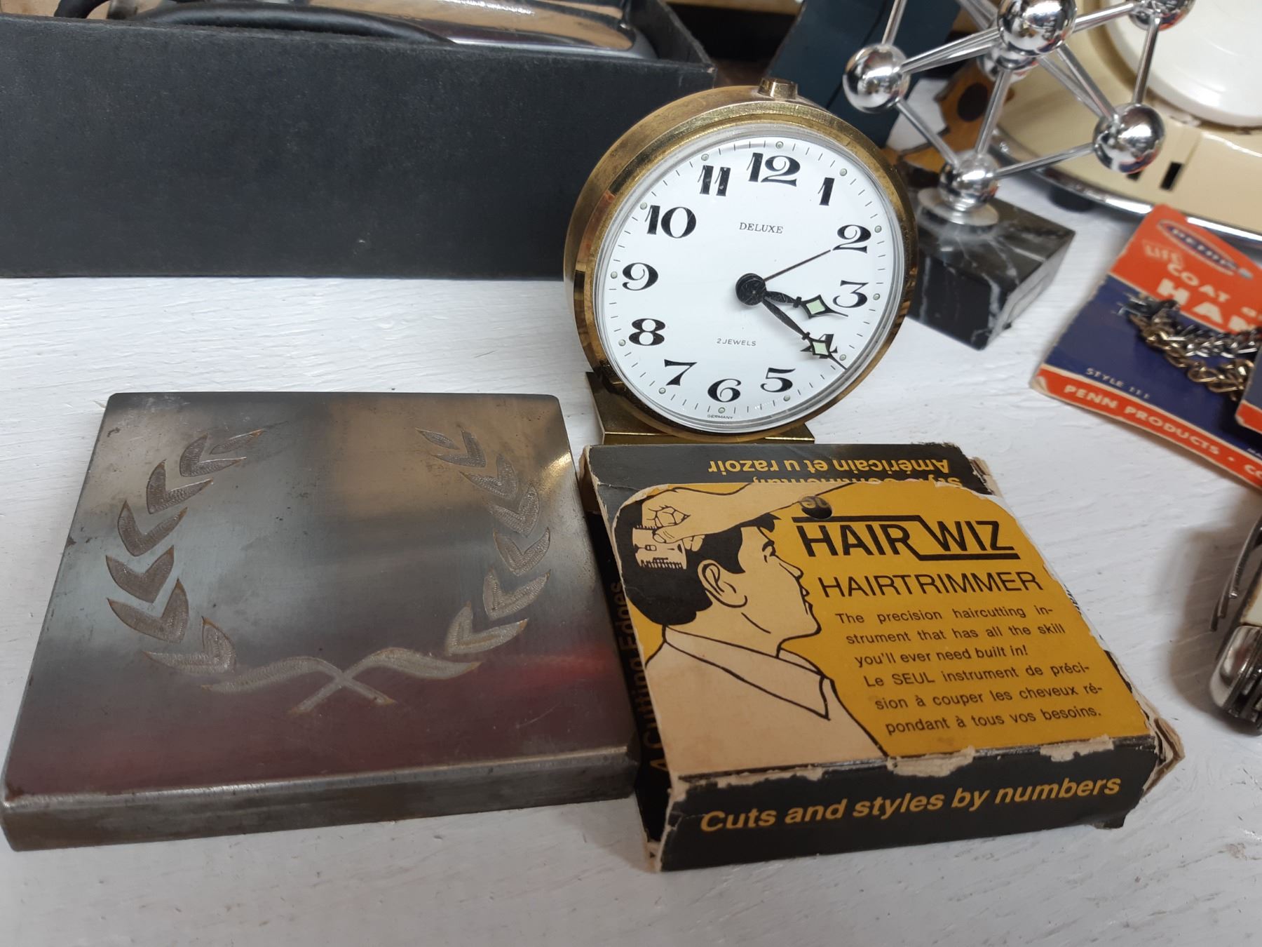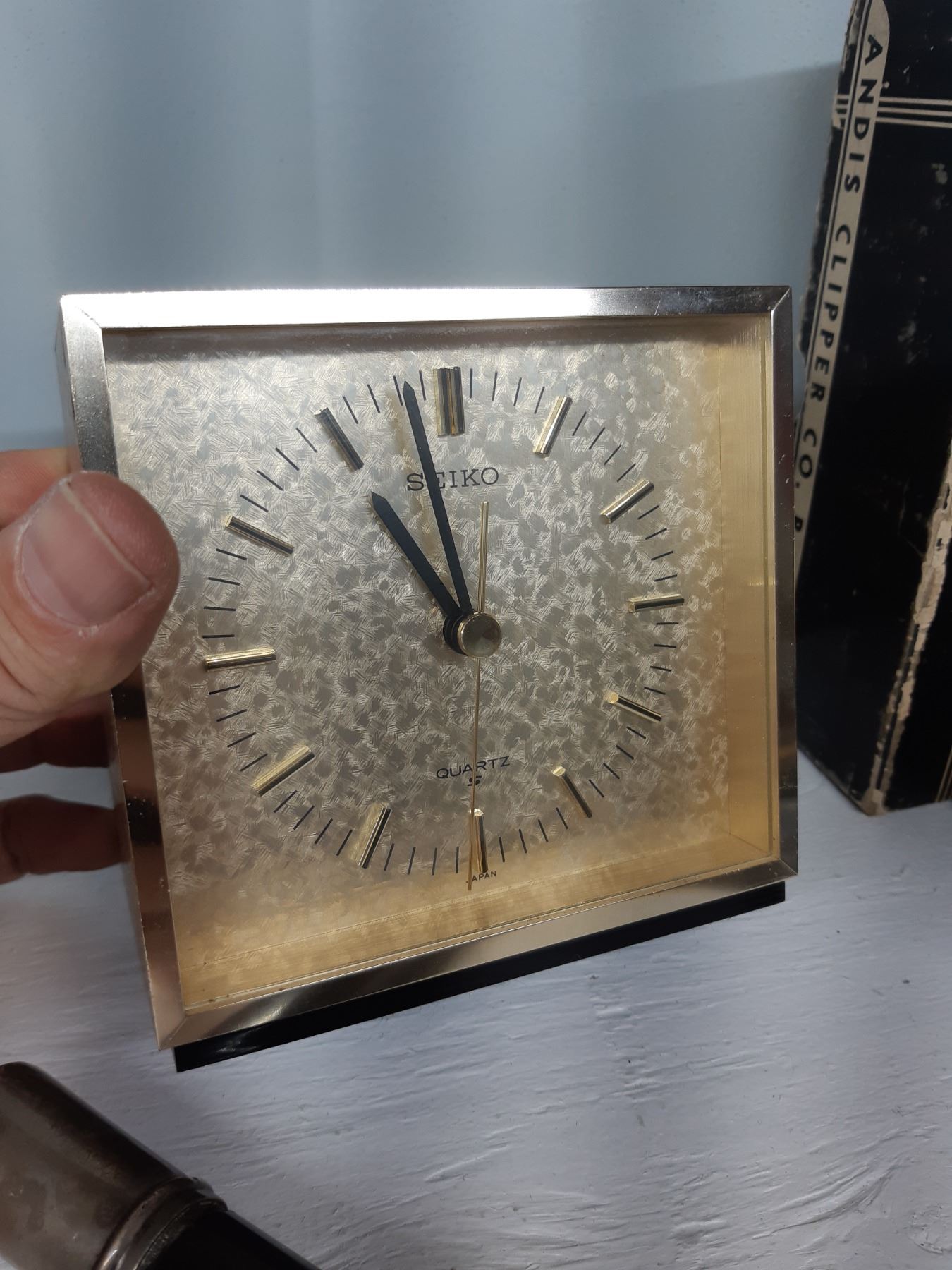 Assortment of men's accessories, vintage Dr. Scholls foot messager Andis clipper untested. Seiko clock and more. Bring packing supplies and pickup at 10 am