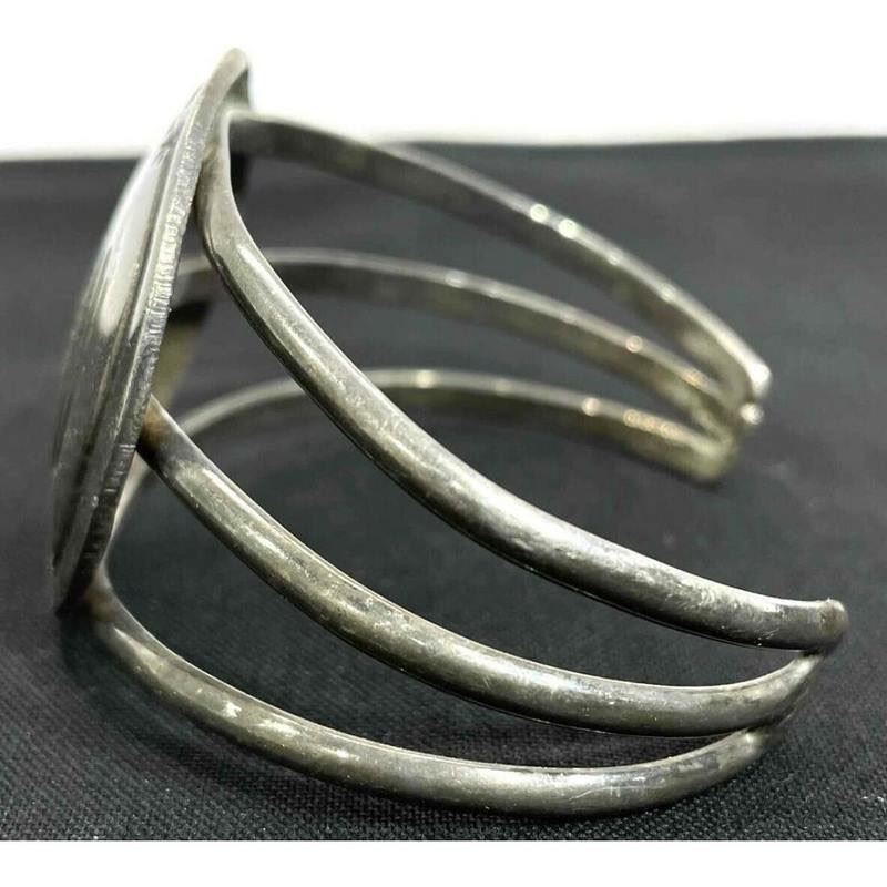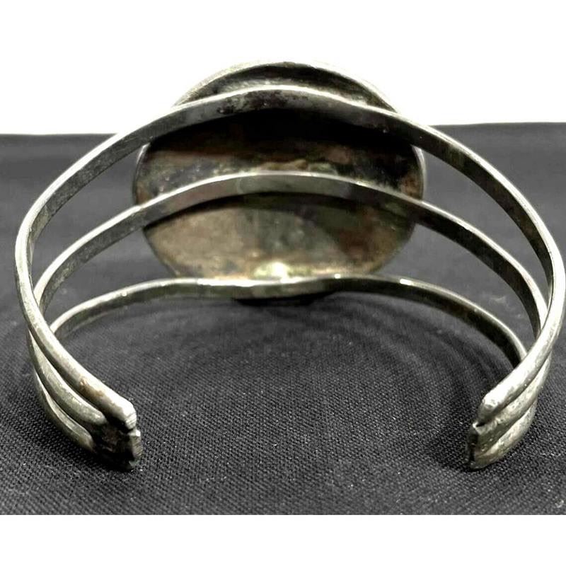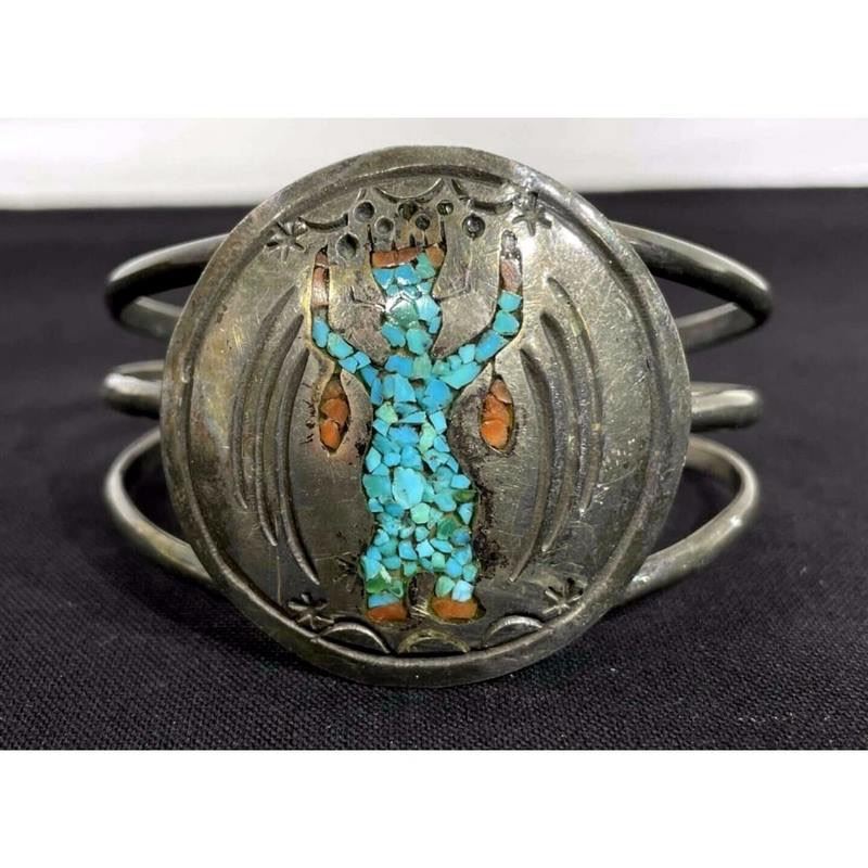Vintage Navajo Turquoise Coral Kachina Bracelet Sterling Silver Cuff