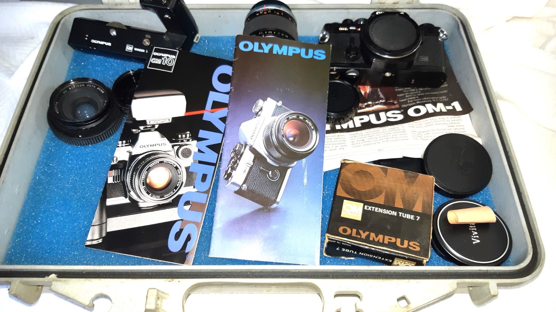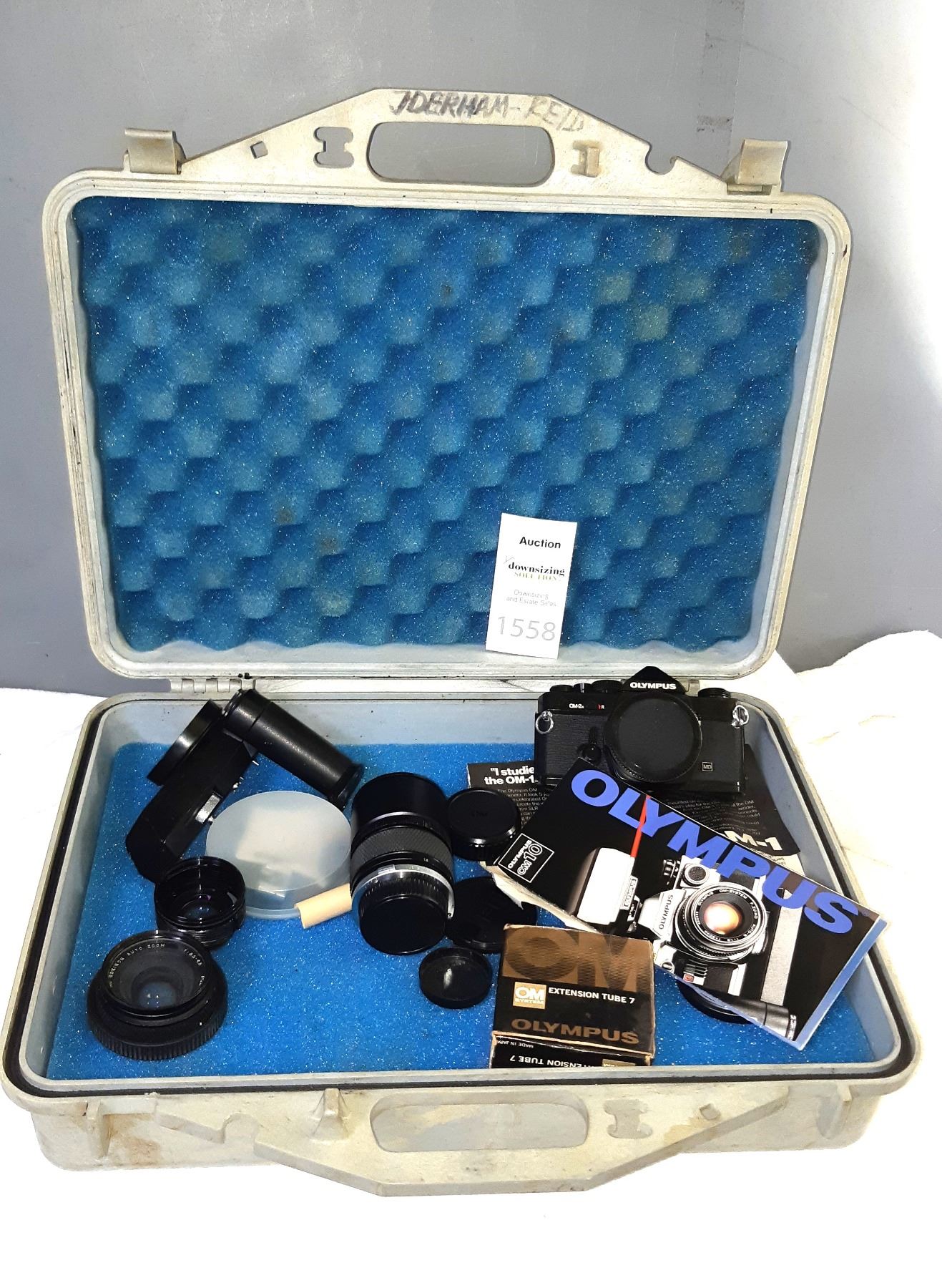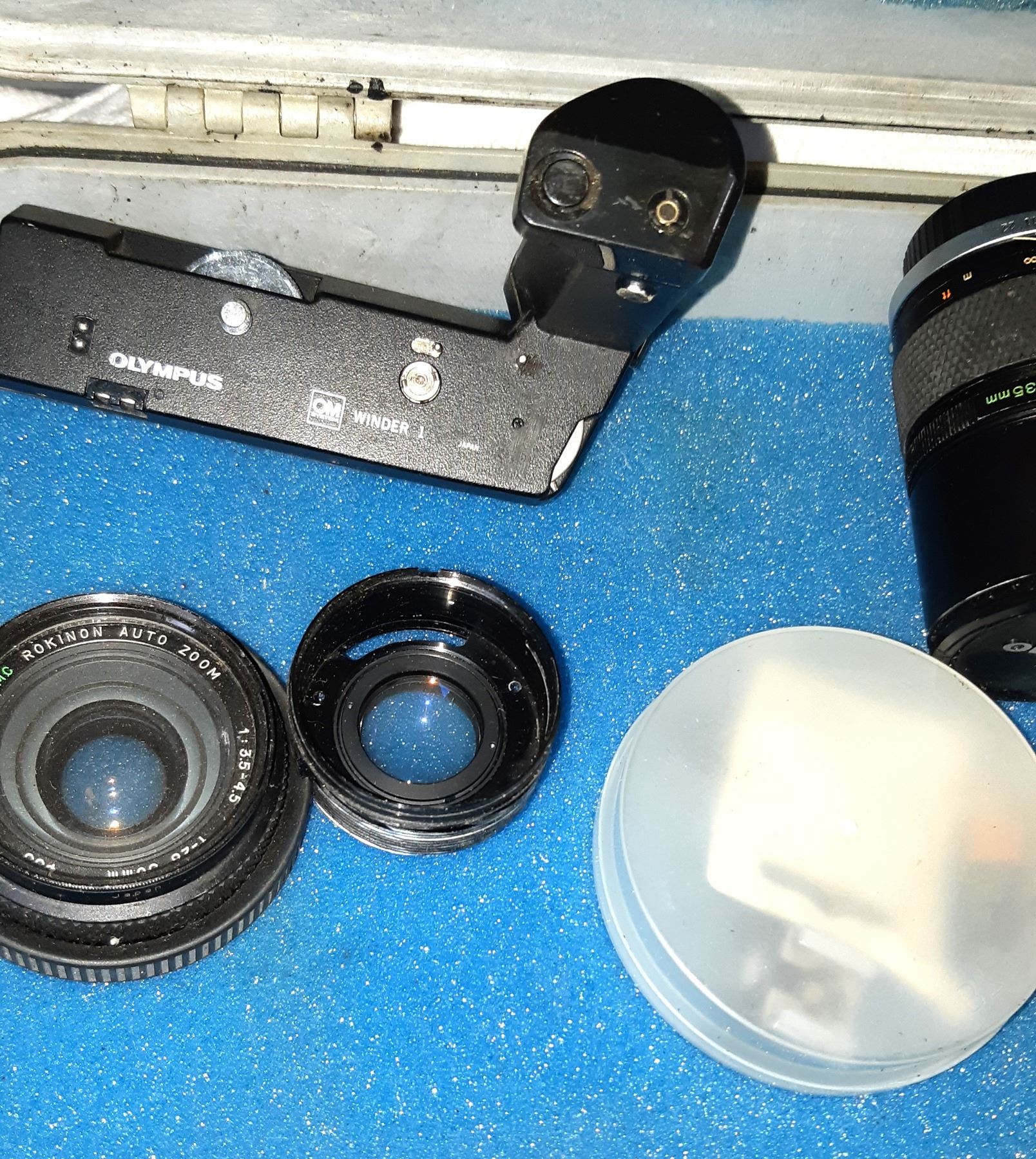 Olympus OM-2n camera untested. Lenses & hard case. Pickup at 9 am