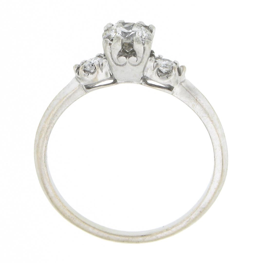 A vintage solid 14k white gold ring by Orange Blossom, with 3 old transitional cut natural diamonds (G/H - SI1/SI2 ; 0.43ctw). The ring is size 6.0, weighs a total of 2.16 grams, and measures 5.2mm wide.