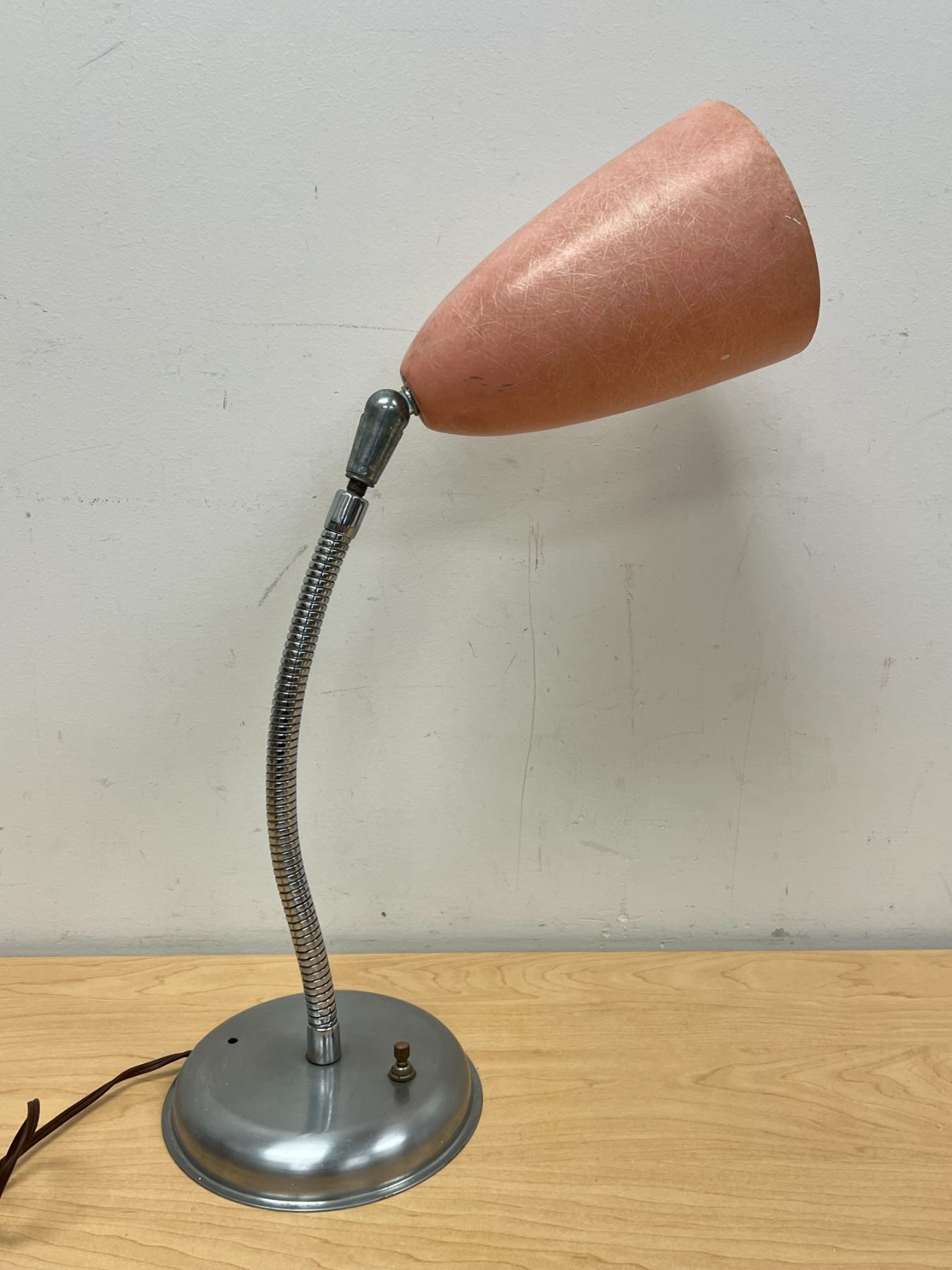 Vintage Pink Fiberglass Shade Chrome Gooseneck Table Lamp - Works 22.5" - see all photos