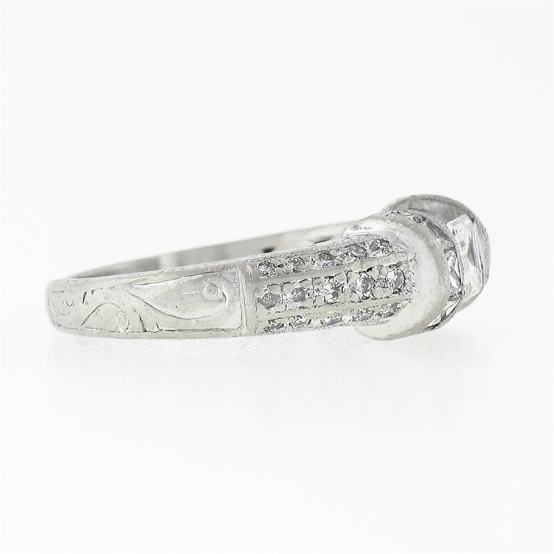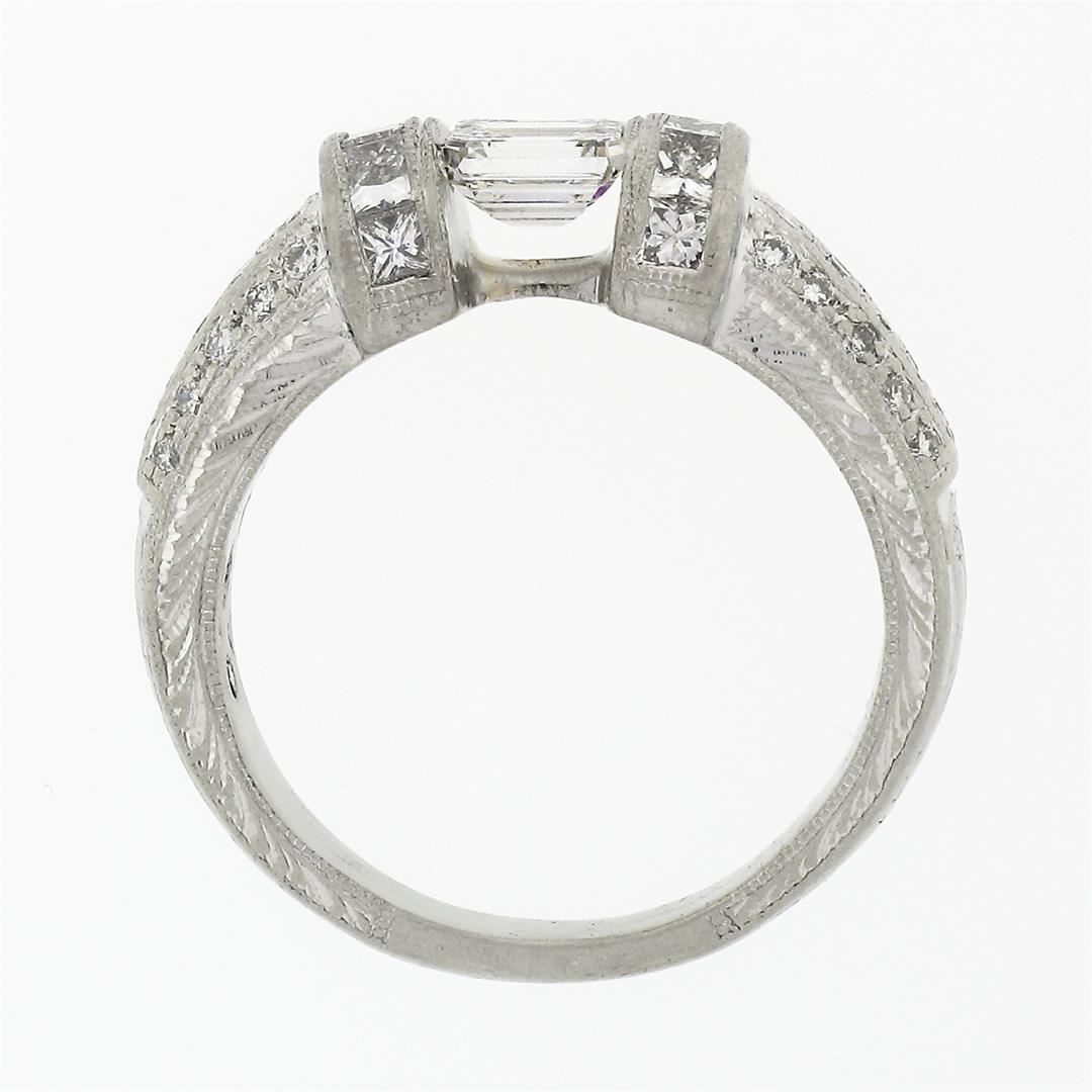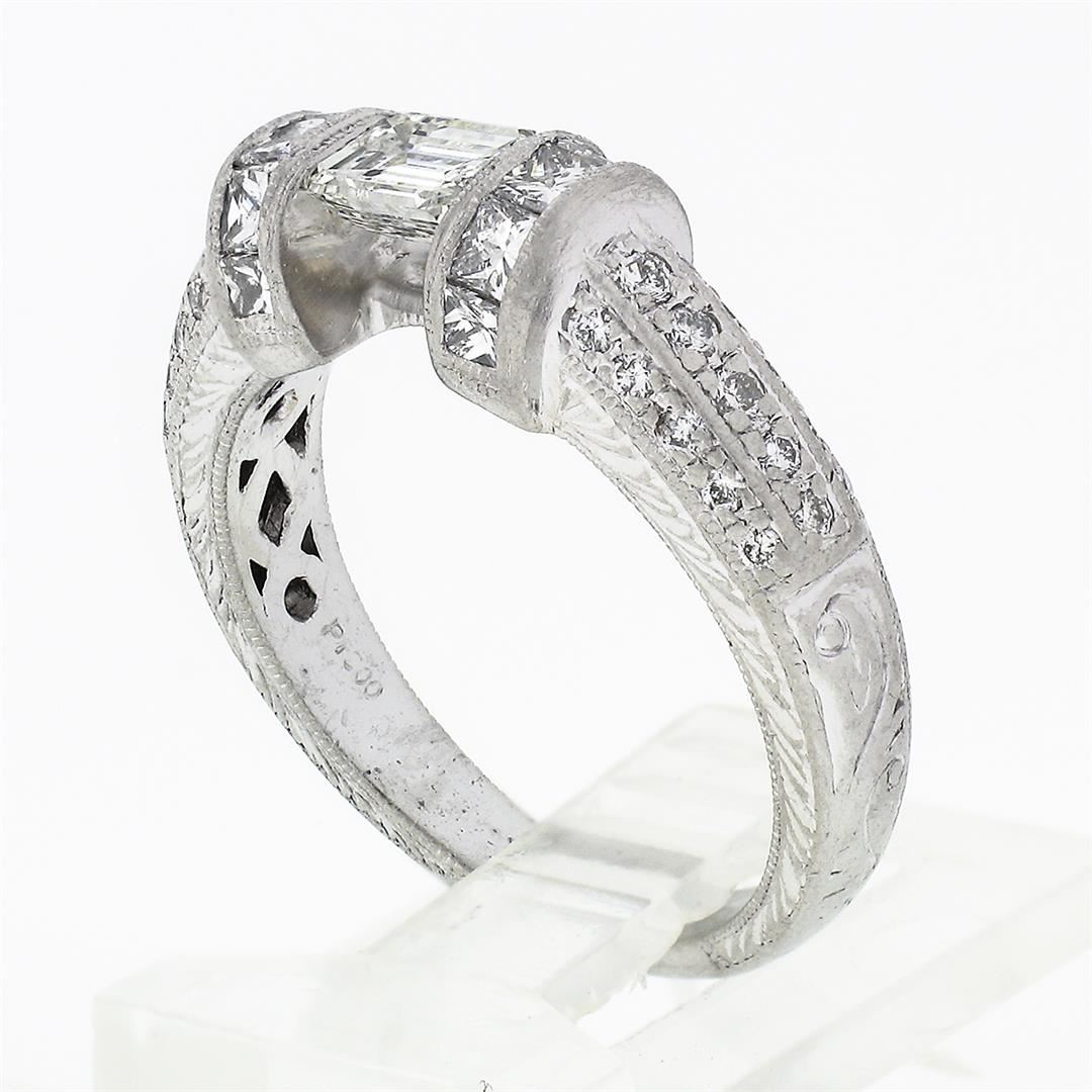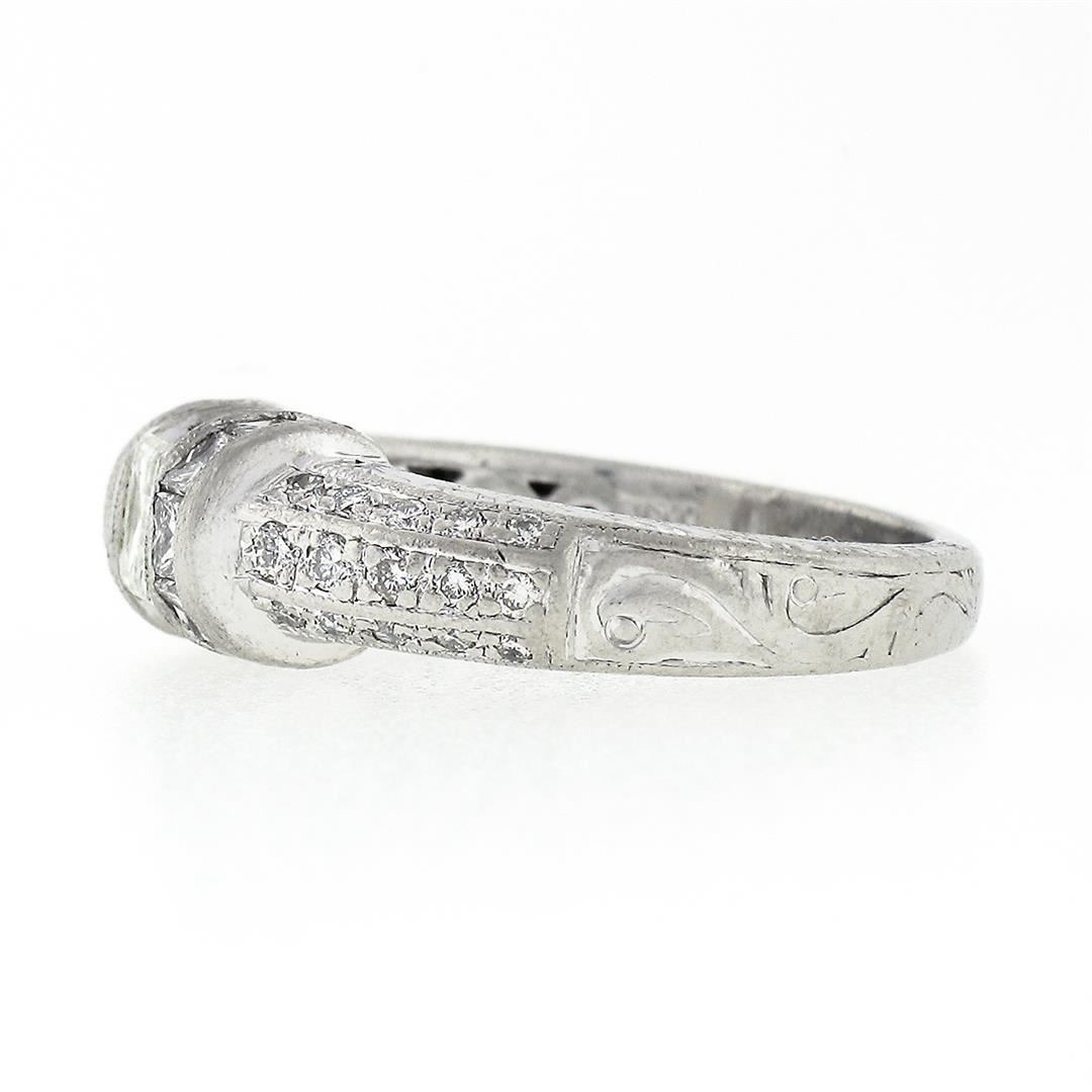 Vintage Platinum 1.35 ctw Floating Diamond w/ Accents Hand Engraved Work Band Ri