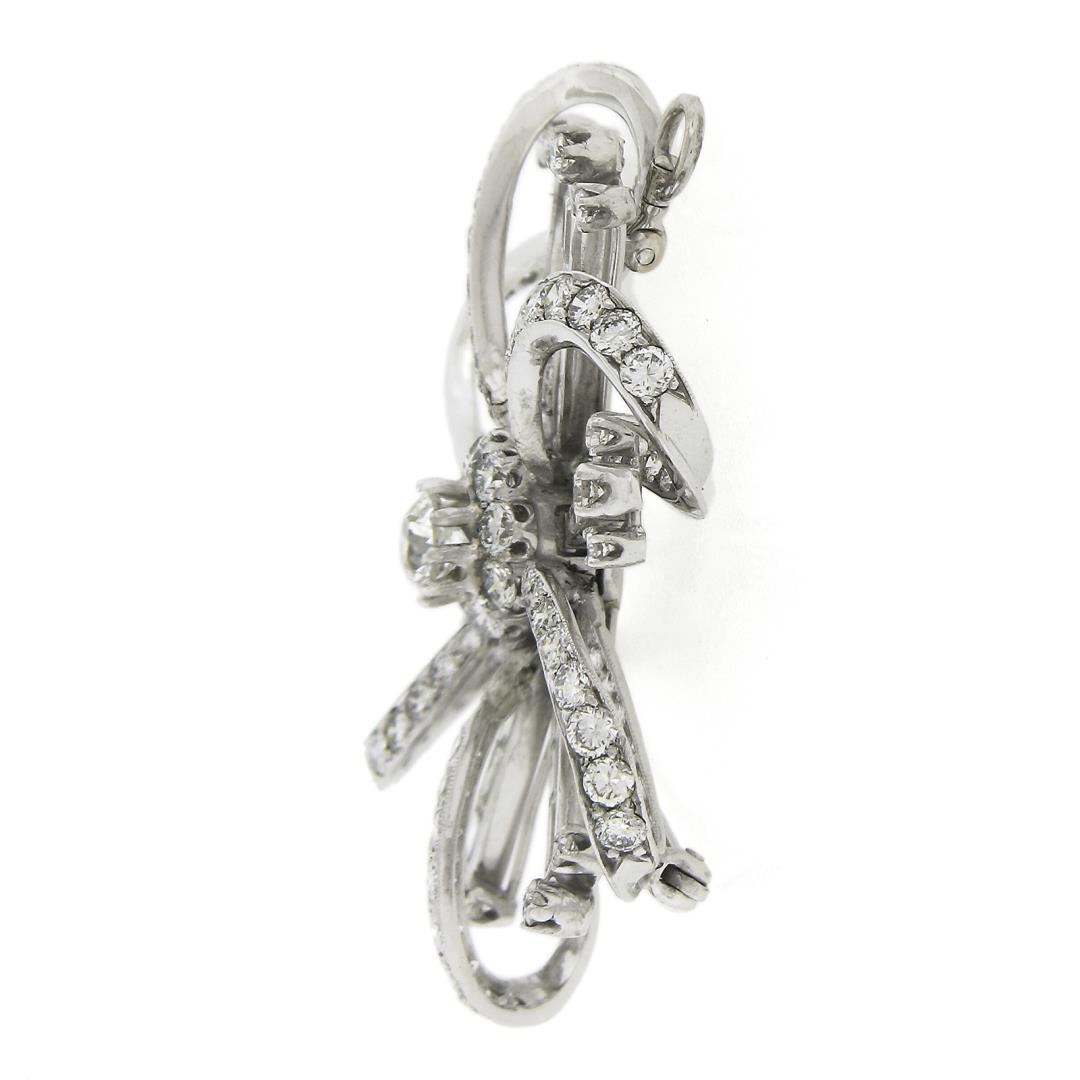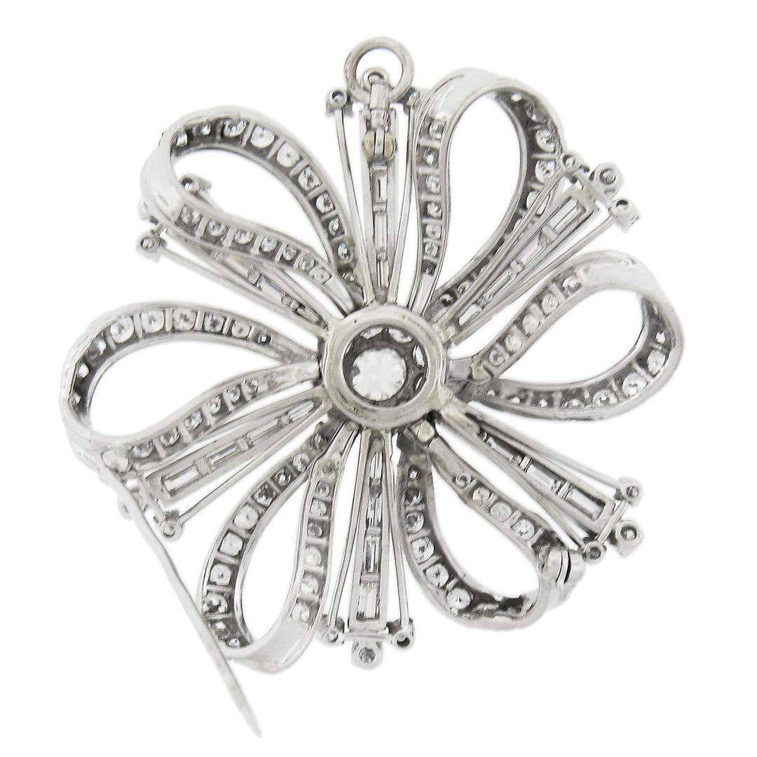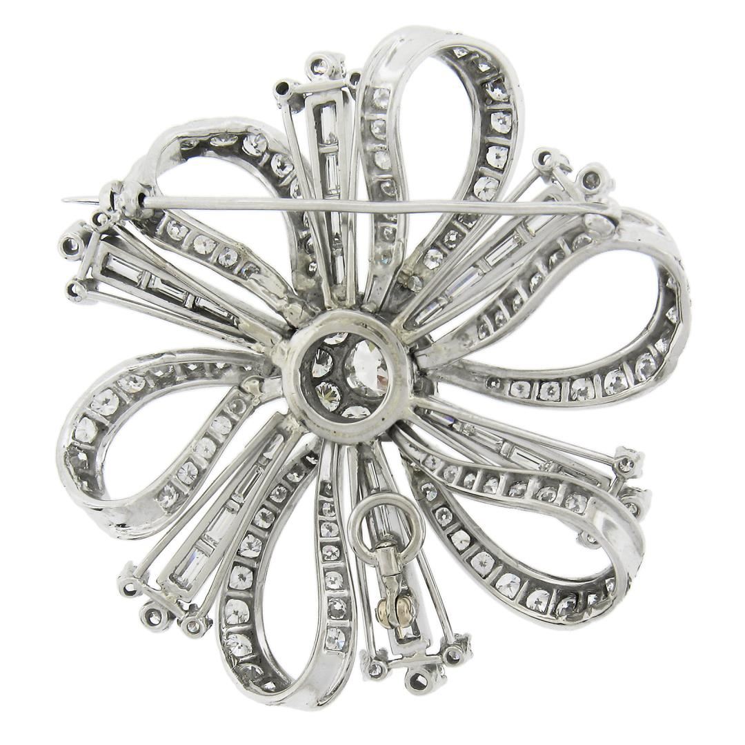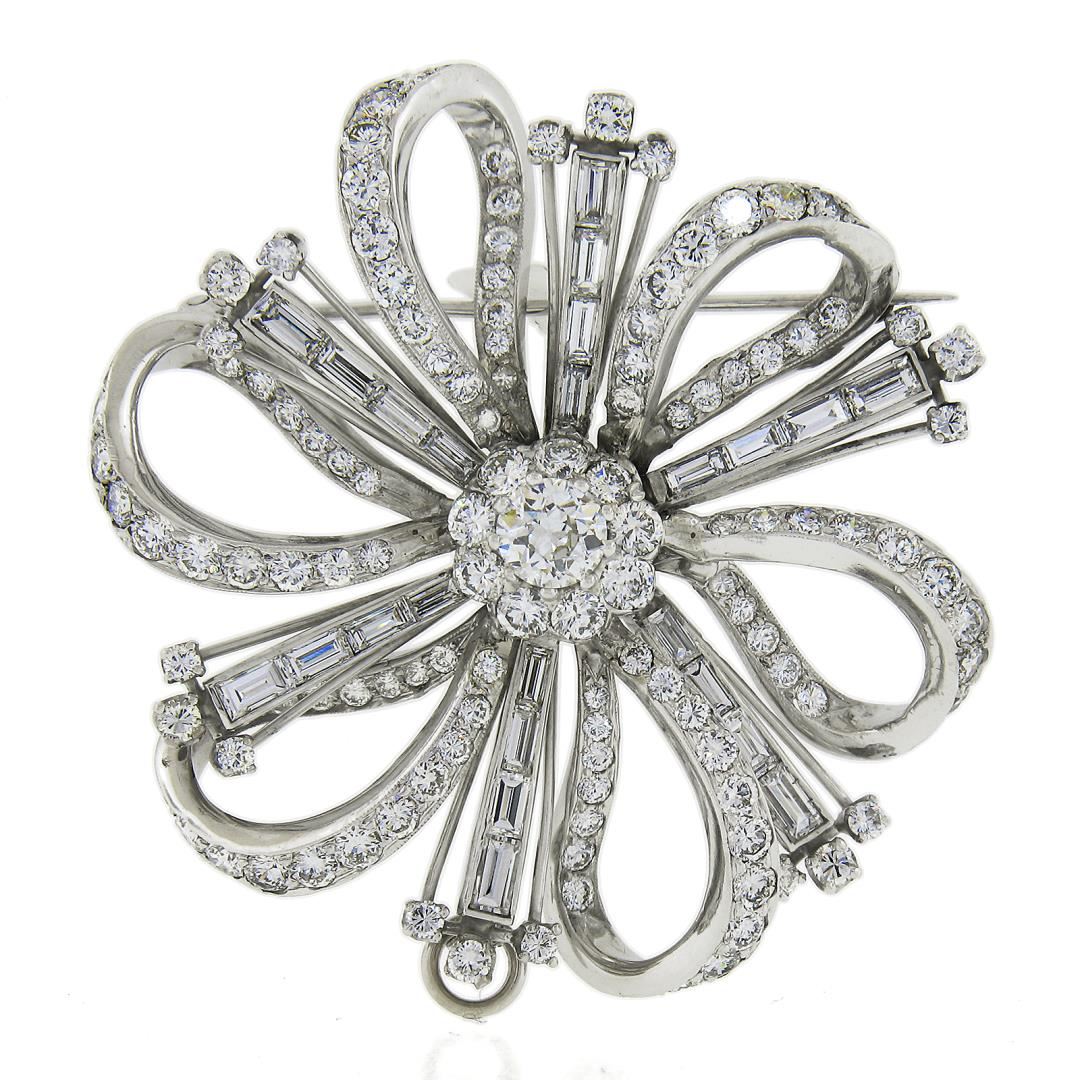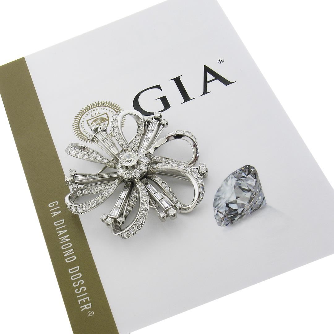 A vintage solid platinum flower brooch pendant, with 1 GIA graded old european cut natural diamond (H - SI1 ; 0.70ct), and 24 baguette cut natural diamonds (G/H - VS1-SI2 ) and numeruos of round & old transitional cut natural diamonds (G/H - VS1-SI2 ; 7 to 7.5ctw). Measures 48.3x46.7mm and weighs a total of 22.58 grams.& the inside bail measurement: 2.1x3.2mm. Comes with all original relevant certifications.