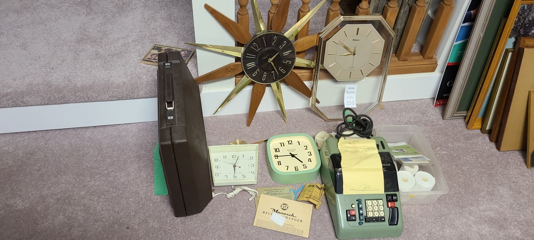 Vintage Smith Corona Tywriter, clocks Vintage Electronic calculator untested. and more. Please bring packing materials. Pick up at 11 am.