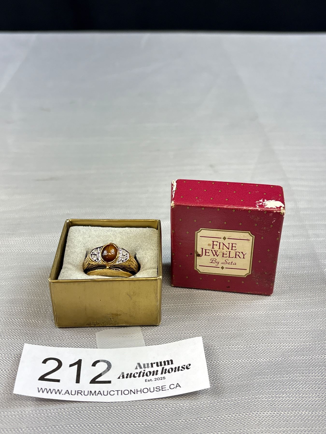 Vintage Solid Mens Tigers Eye Ring Marked 14K G.E. Heavy!