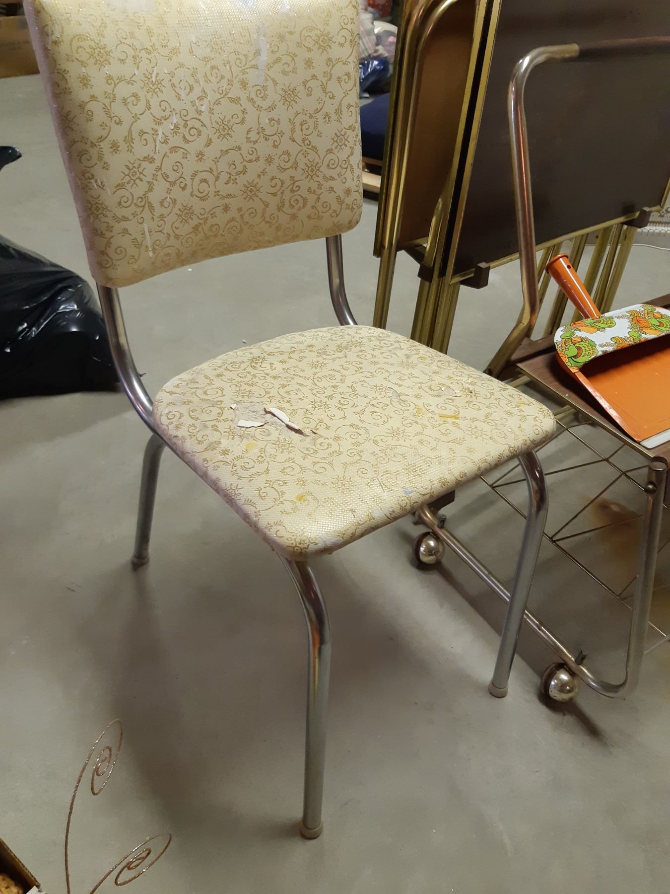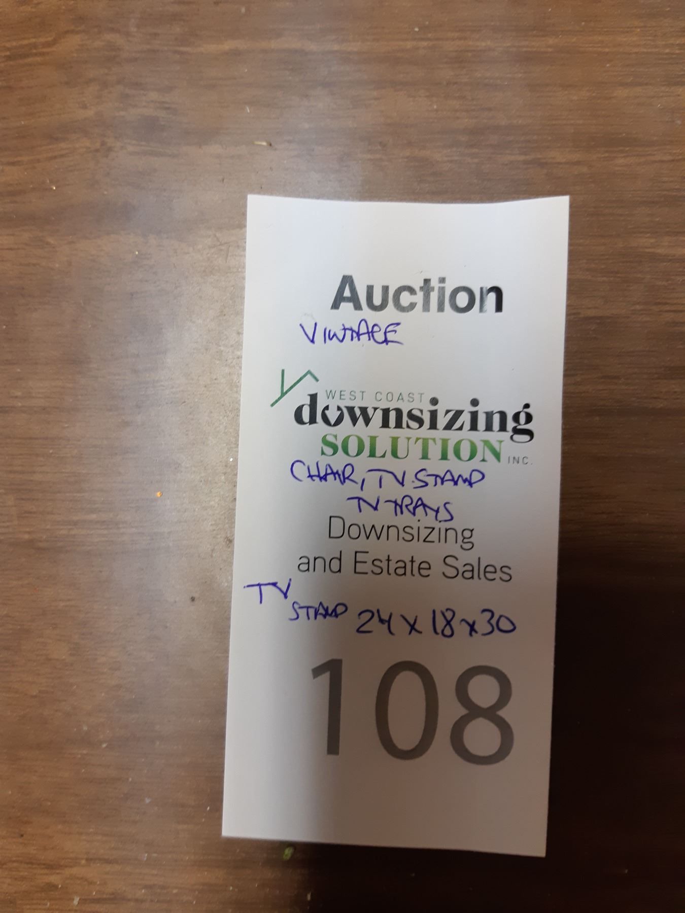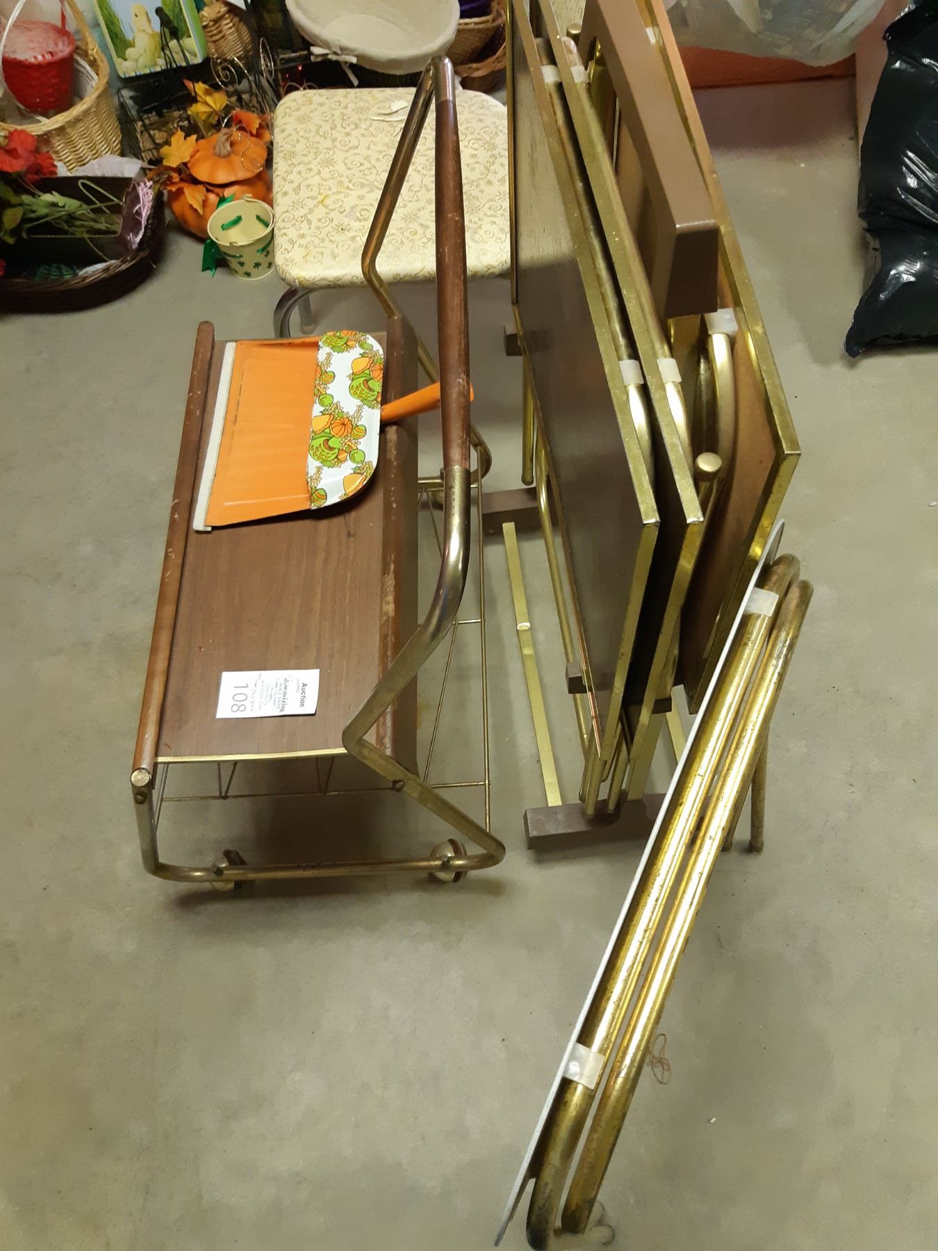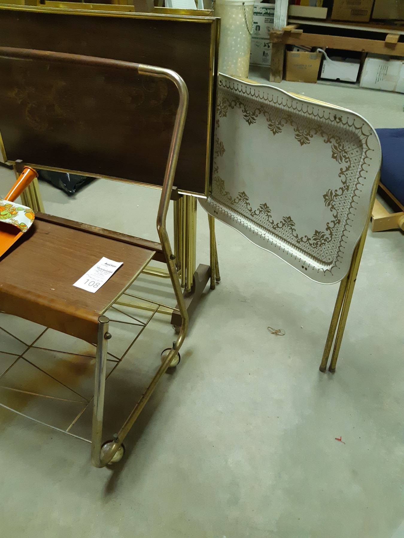 TV tables, vintage metal tv stand, chair. Pickup at 10 am