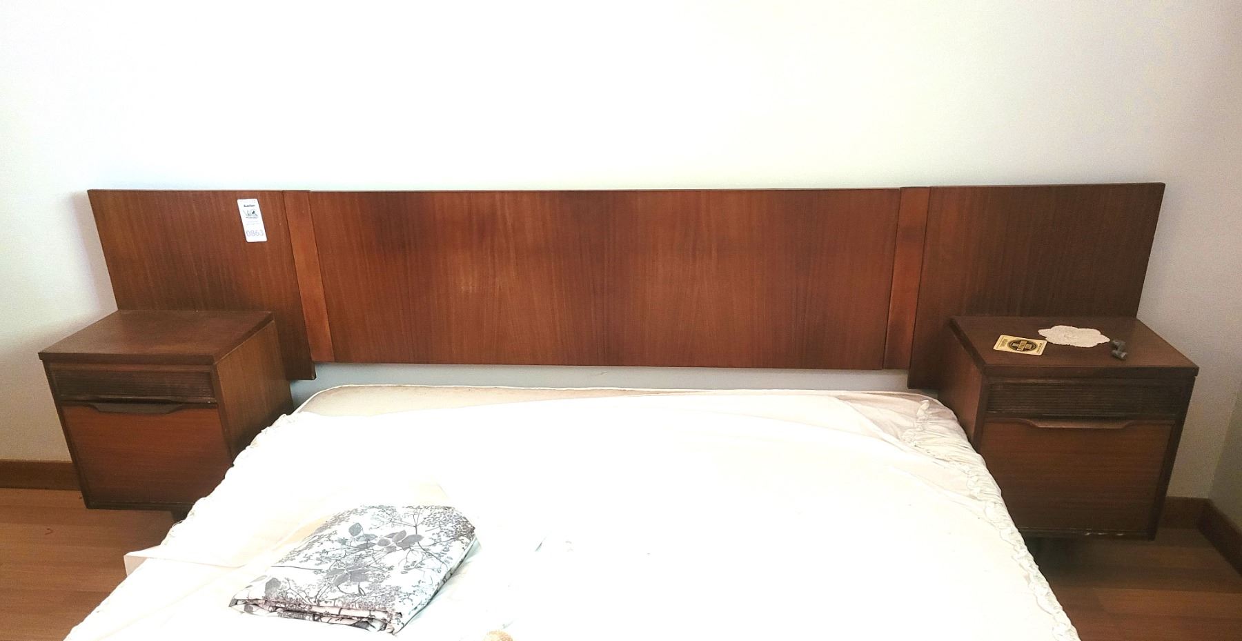 Teal Headboard with built in Side tables.c1970 Comes in 3 sections, bring tools to dismantle. 97x13x32. Pickup at 11 am