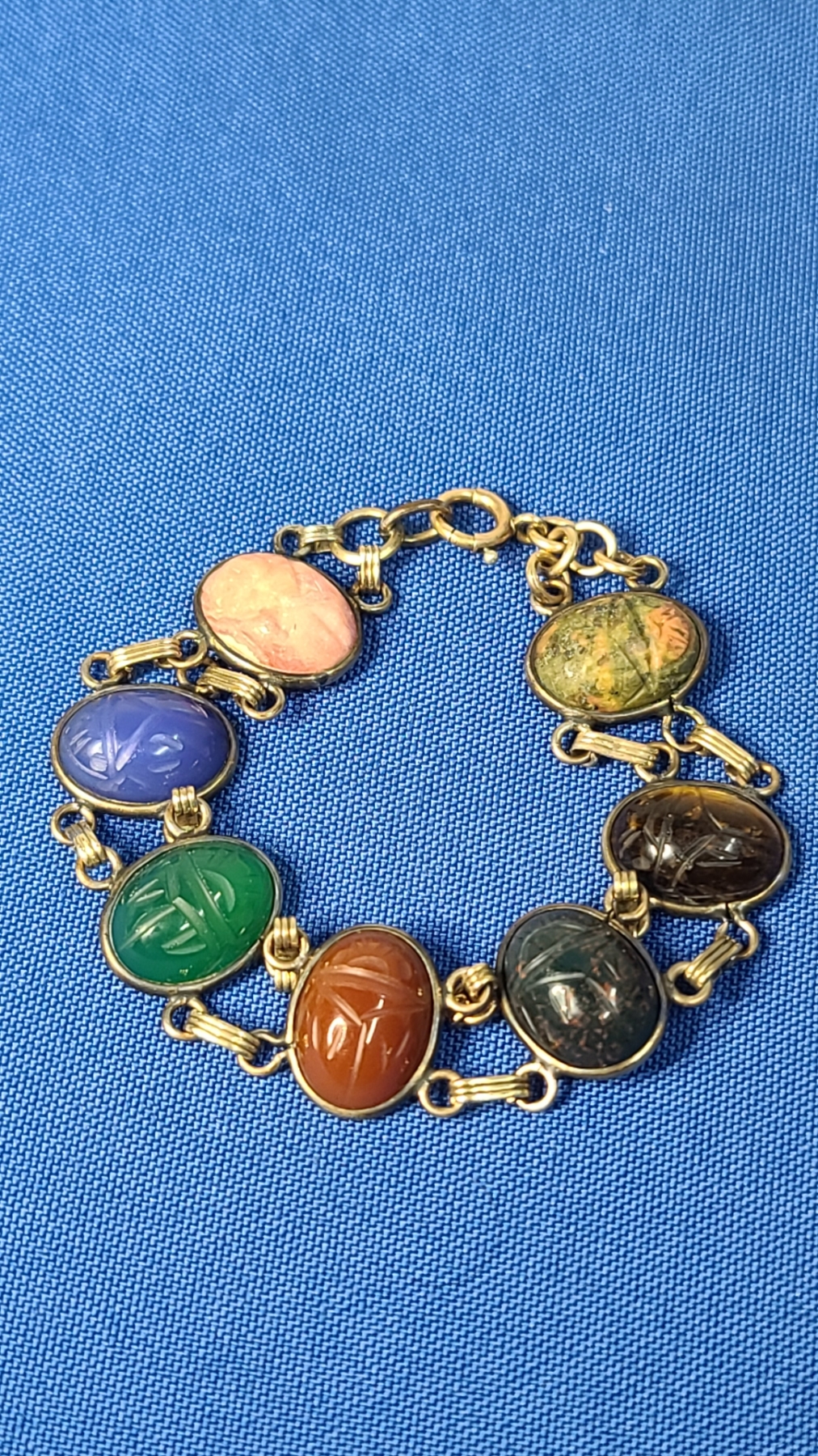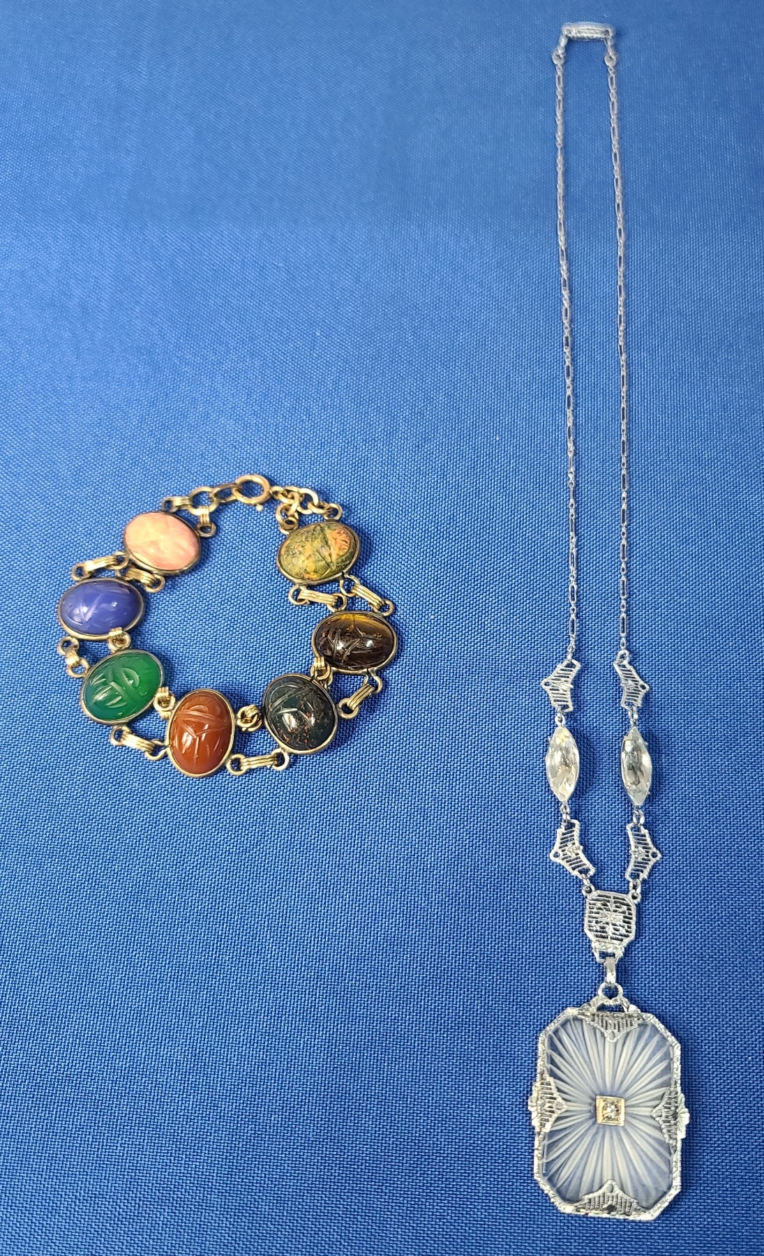 Vintage Van Dell Gold Filled Scarab Bracelet & Costume Art Deco Necklace