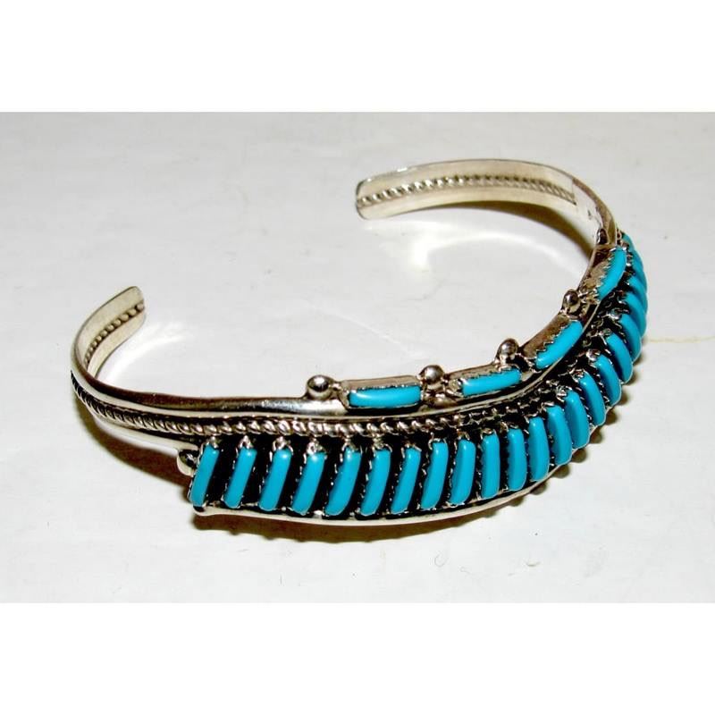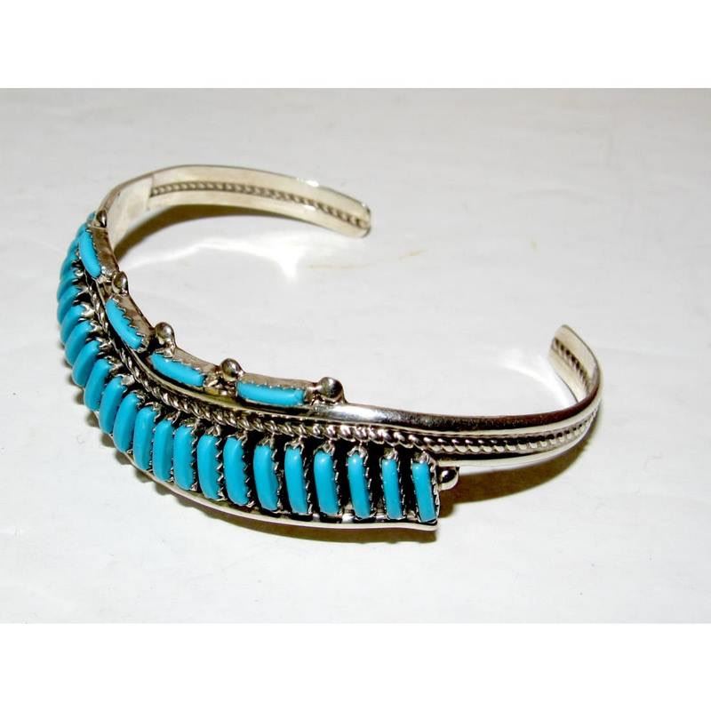 Vintage Zuni Petit Point Turquoise Cuff Bracelet Sterling Silver