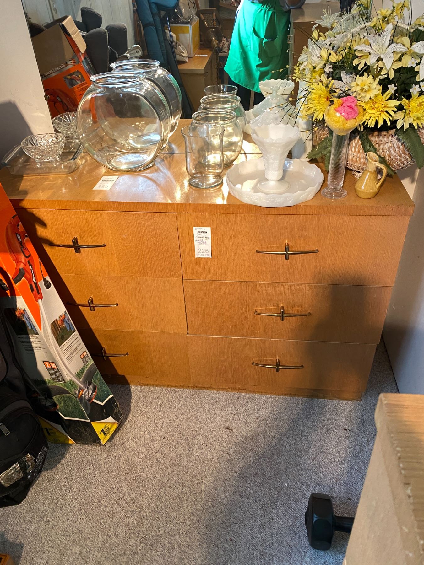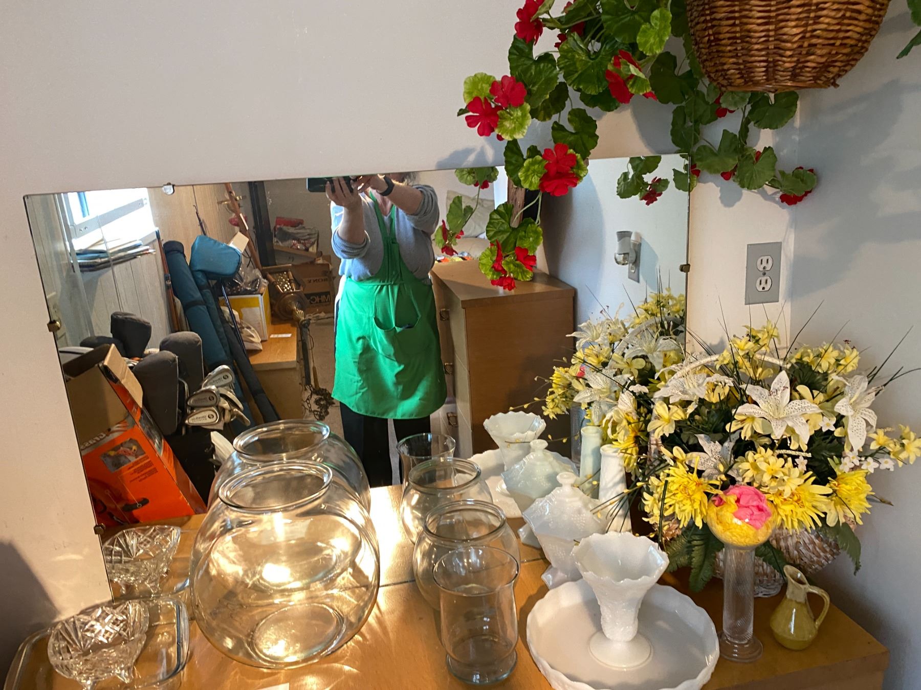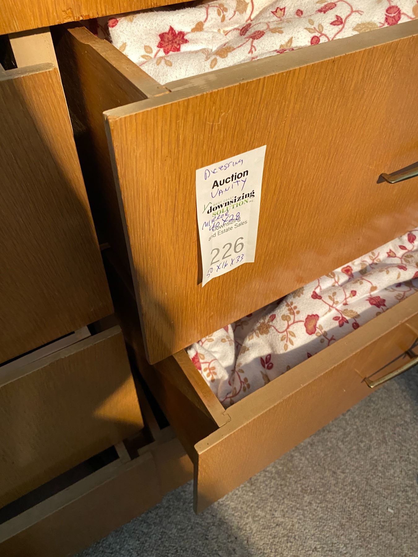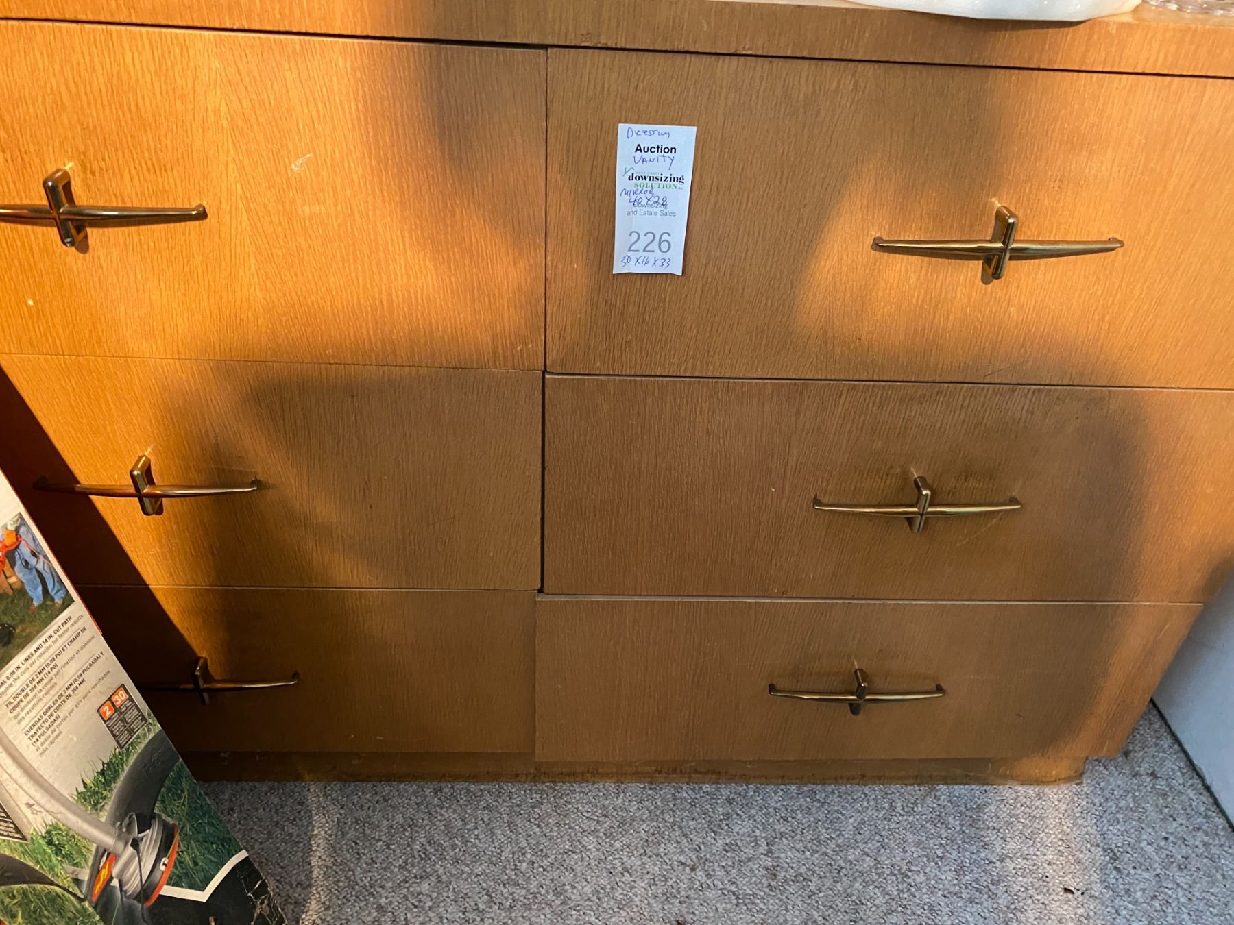 vintage dresser with mirror , 50 x 16 x 33, mirror 40 x 28. contents included. Bring help to carry out. Pick up between nine and 10.