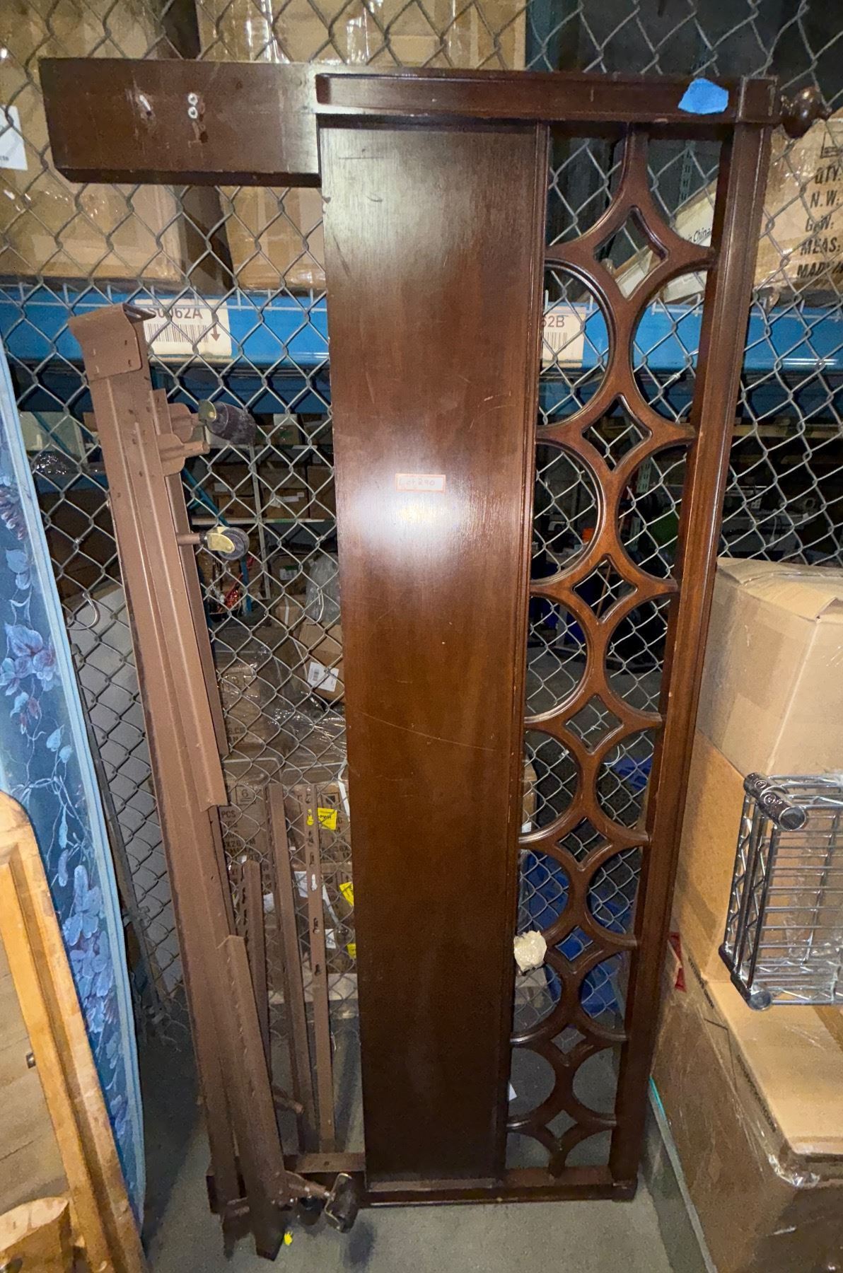 Vintage mid century style mahogany headboard, metal bed rails / support bars etc