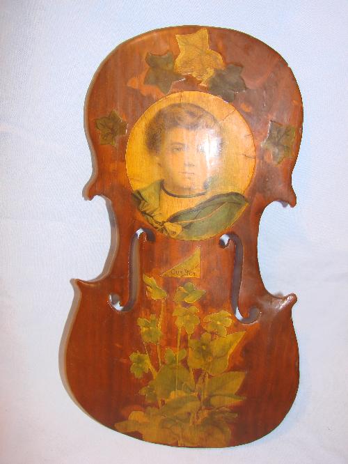 Violin front with child's photo. "Our Boy"