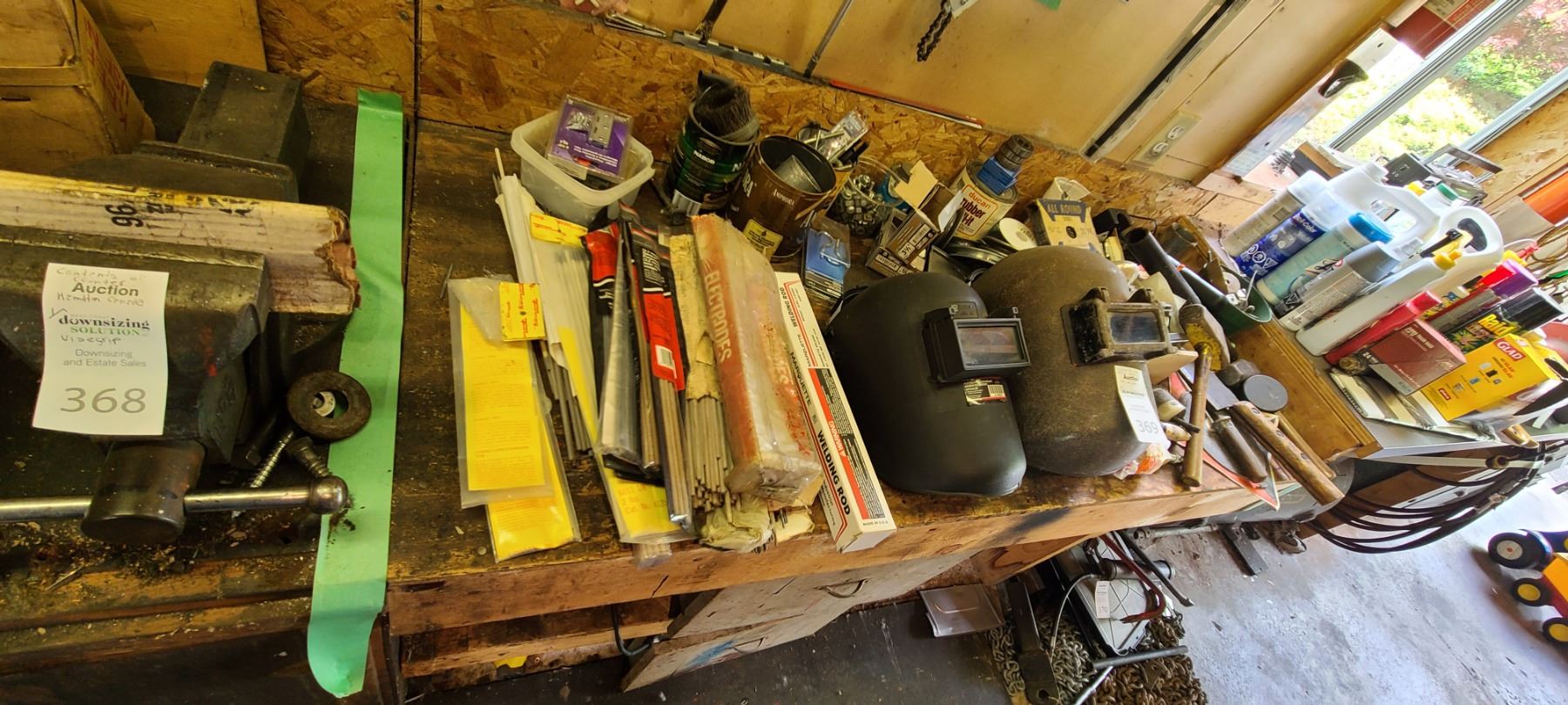 Contents on counter welding face shields, welding rods, black and decker cordless drill an more. Please bring packing materials. Pickup at 3 pm
