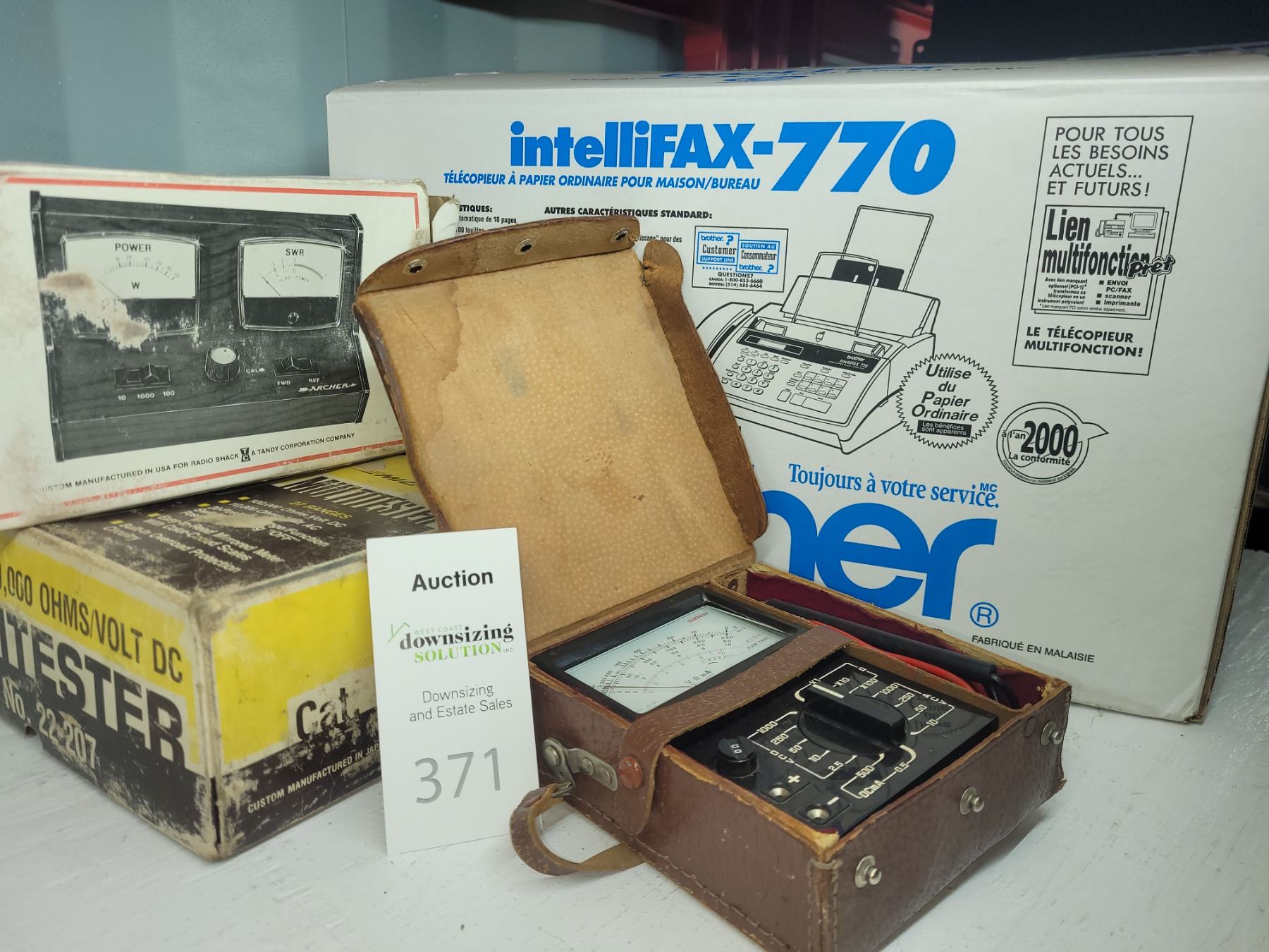 Vintage Sanwa multimeter in leather holder. Archer CB 3 Range Power Meter & SWR Bridge 21-520, Micronta Multitester 27 ranges. BrotherIintelliFax-770 Pickup at 10 am