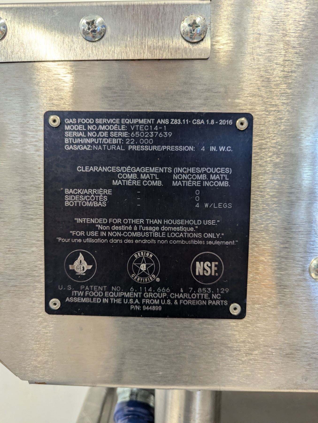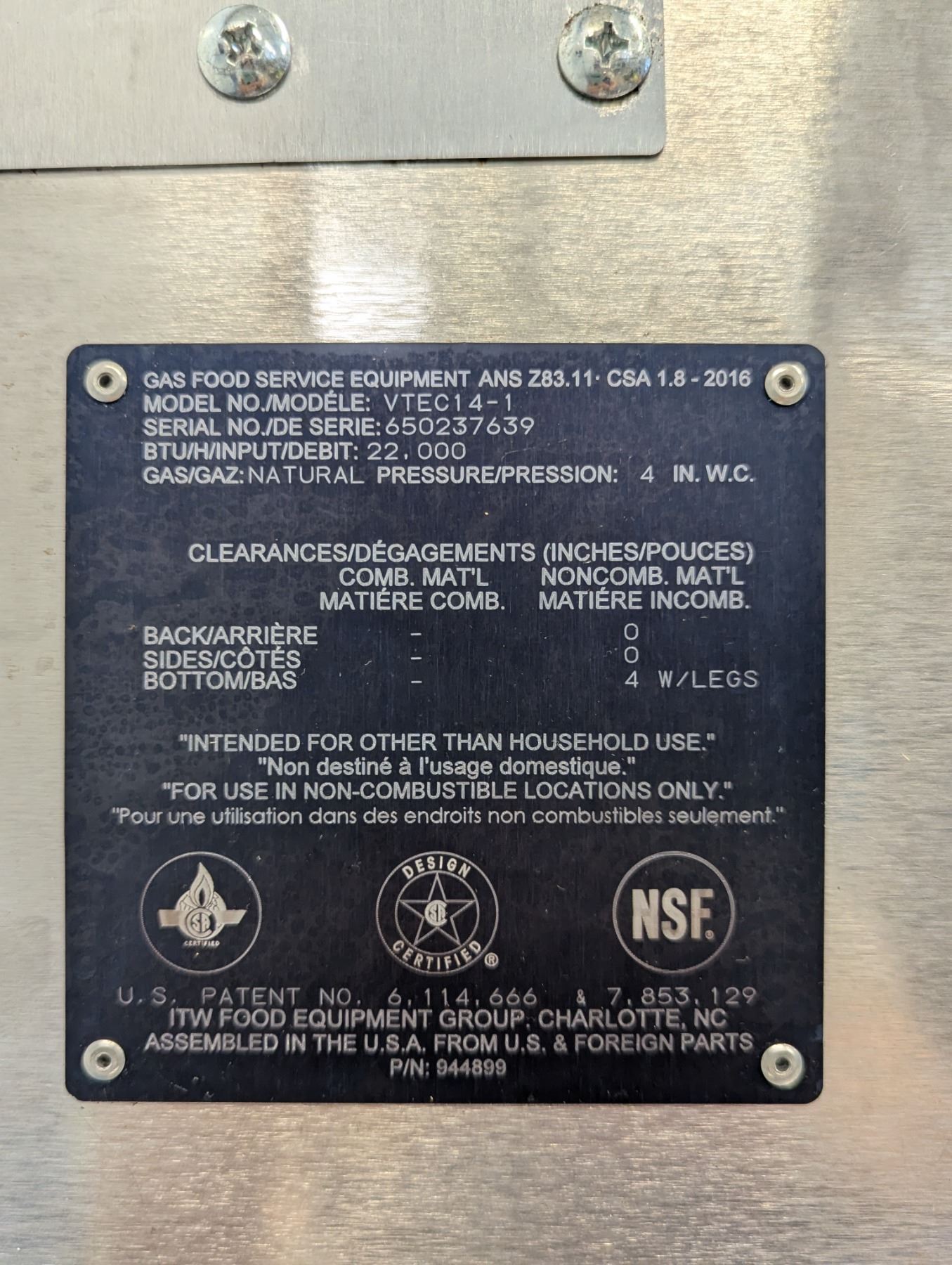 [Used, Tested/Working,] Serial# 650237639, Natural gas, 14-2/5" x 35-1/10" x 16-2/5"