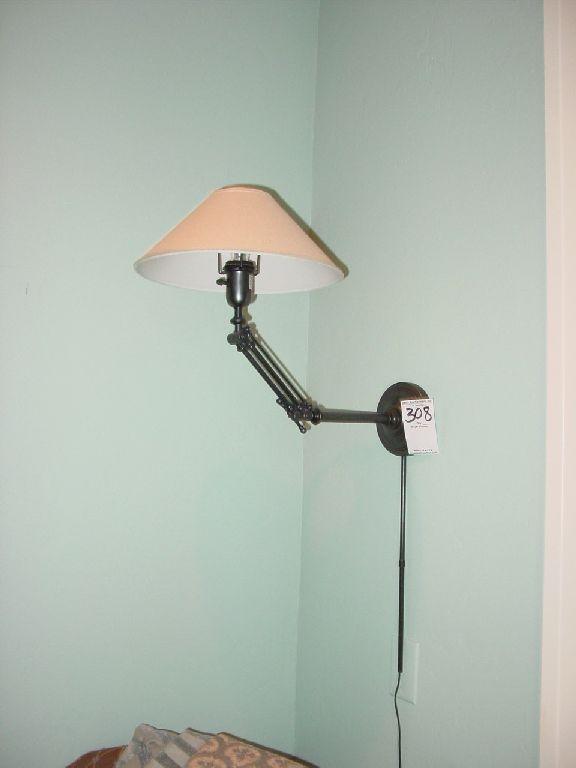 WALL-HUNG LAMP (PLUGS IN) BRONZE FINISH WITH LINEN SHADE