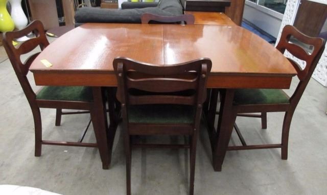 WALNUT TABLE & 4 DINING CHAIRS - 36" X 50" TABLE TOP - VINTAGE