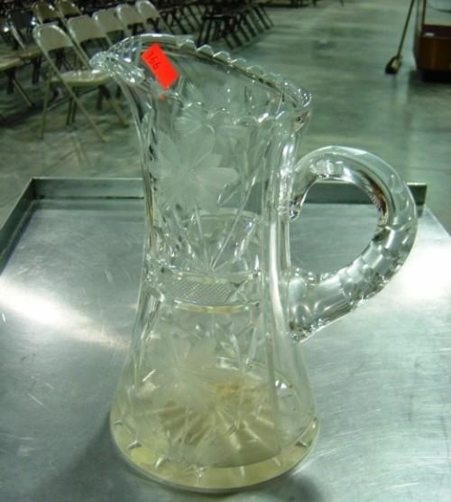 CUT GLASS WATER PITCHER 10 1/2 INCHES