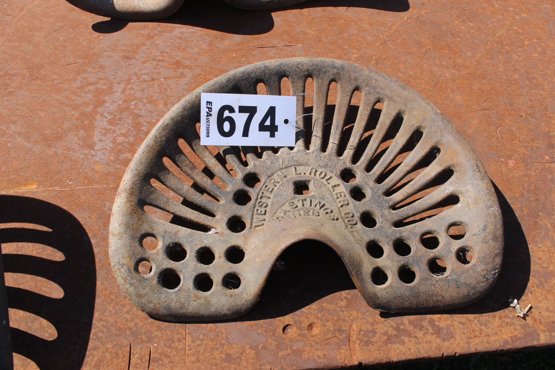 "WESTERN L. ROLLER CO. - HASTINGS, NEB" CAST SEAT