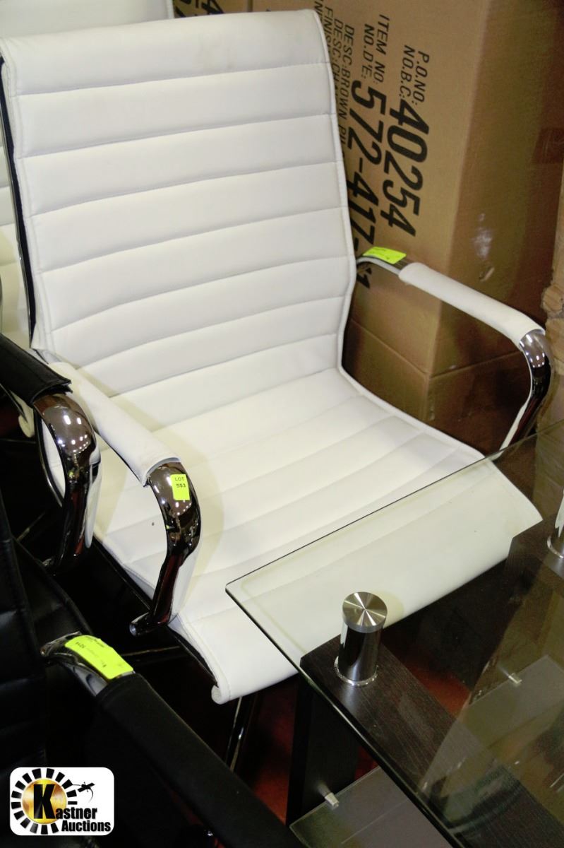 WHITE LEATHERETTE HYDRAULIC LIFT OFFICE CHAIR