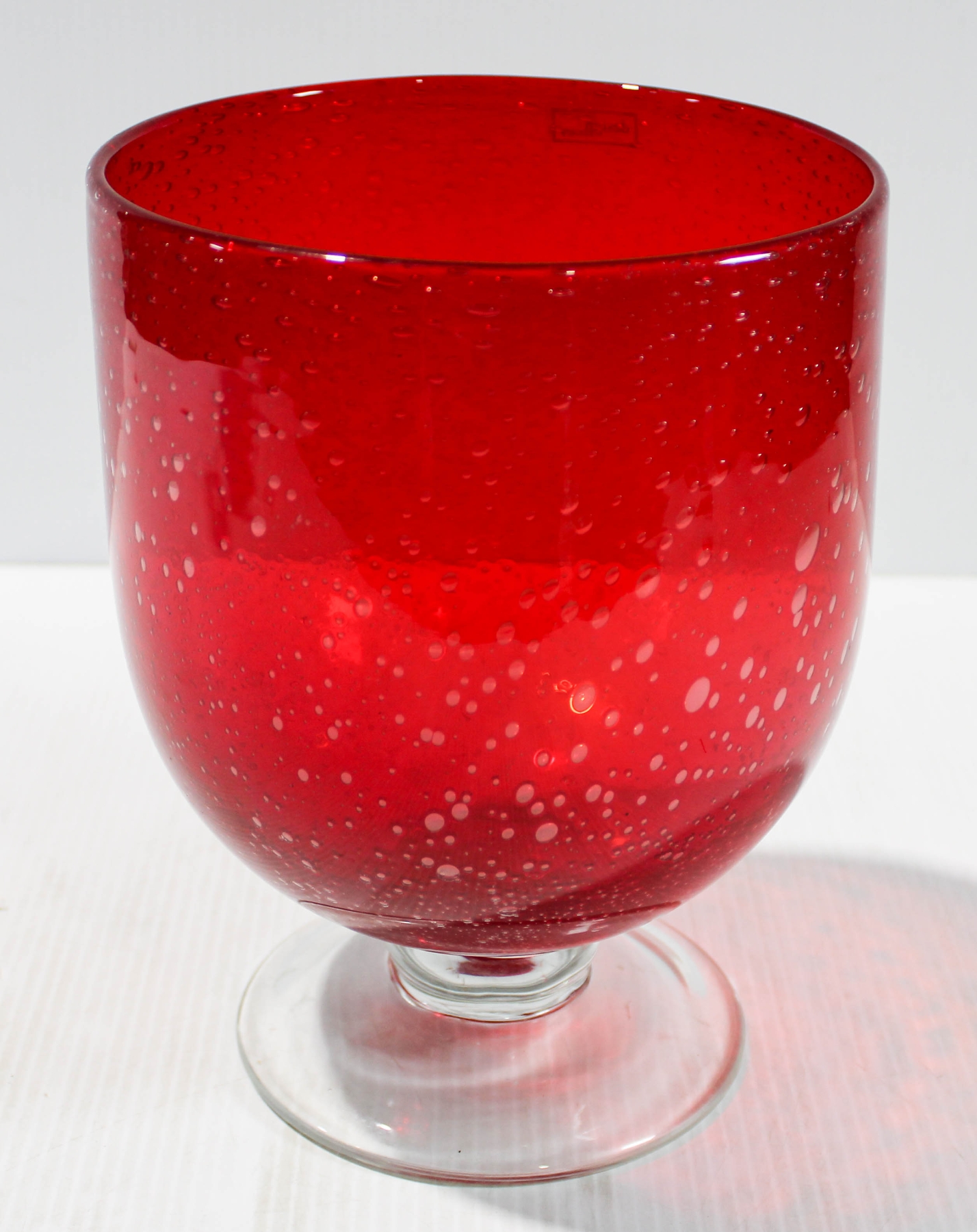 WIDE MOUTH CRANBERRY BUBBLE GLASS VASE