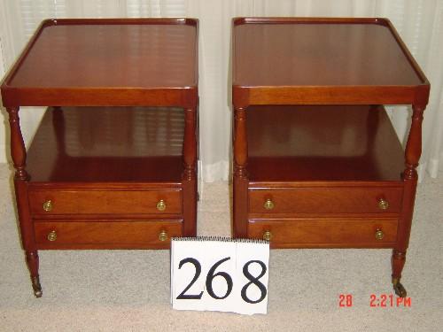 WILLETT CHERRY 2 DRAWER, 2 TIERED END TABLES ON CASTERS