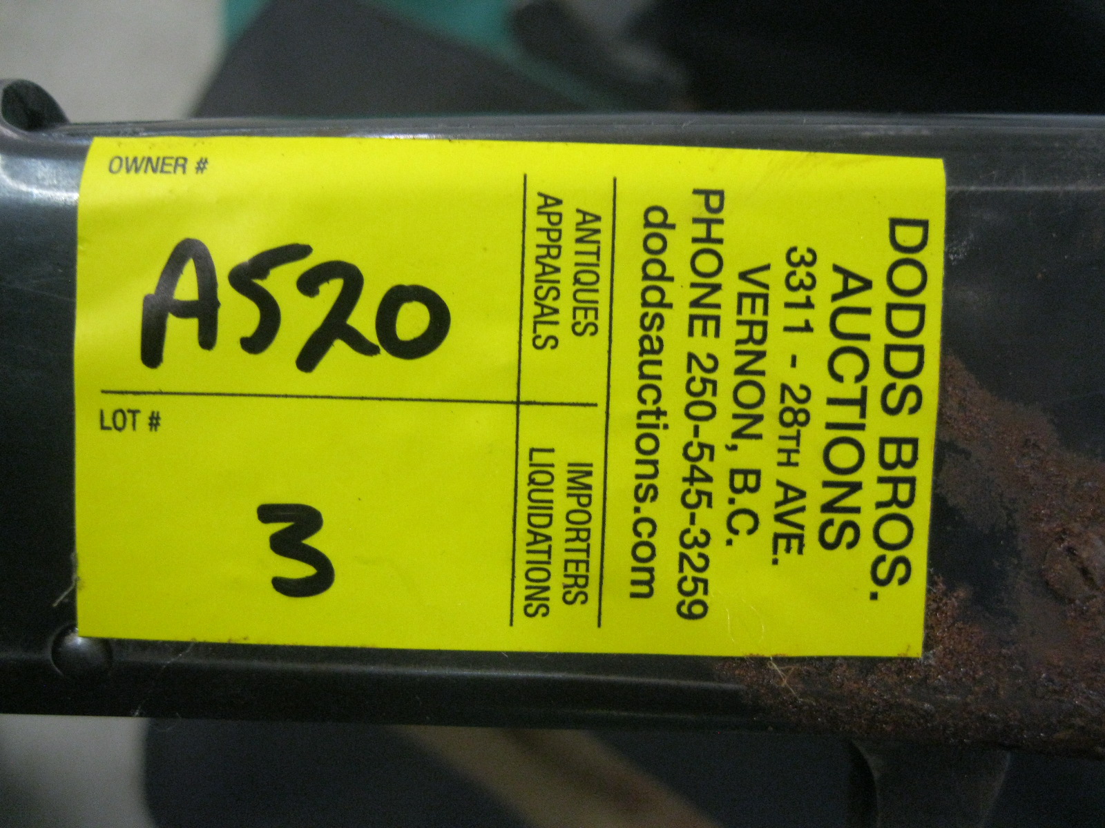 Attendance at the auction preview, or removal of purchased lots by purchaser/bidders and guests is done at their sole risk. Dodds Auction assumes no risk or liability, statutory, common law or otherwise whatsoever for the safety of those attending at the auction premises.
