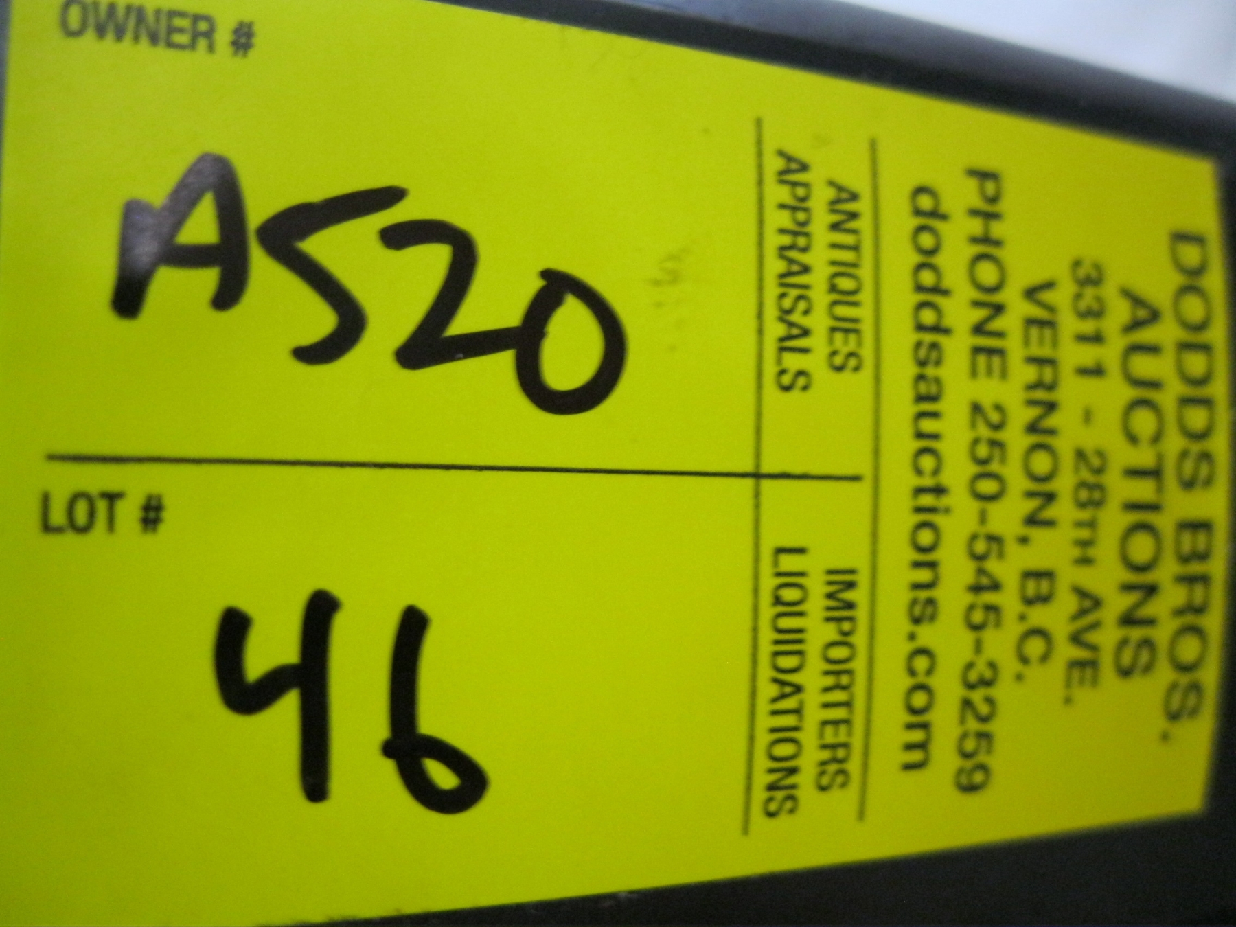 Shipping will be via Canada Post including insurance (unless advised otherwise) at the rate of $2.75/$100 and costs will be determined after the auction and charged to the credit card you registered with on Live Auction World. Dodds Auction is not responsible for any damage incurred through shipping. We DO NOT provide shipping quotes.