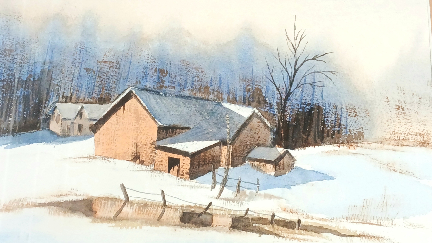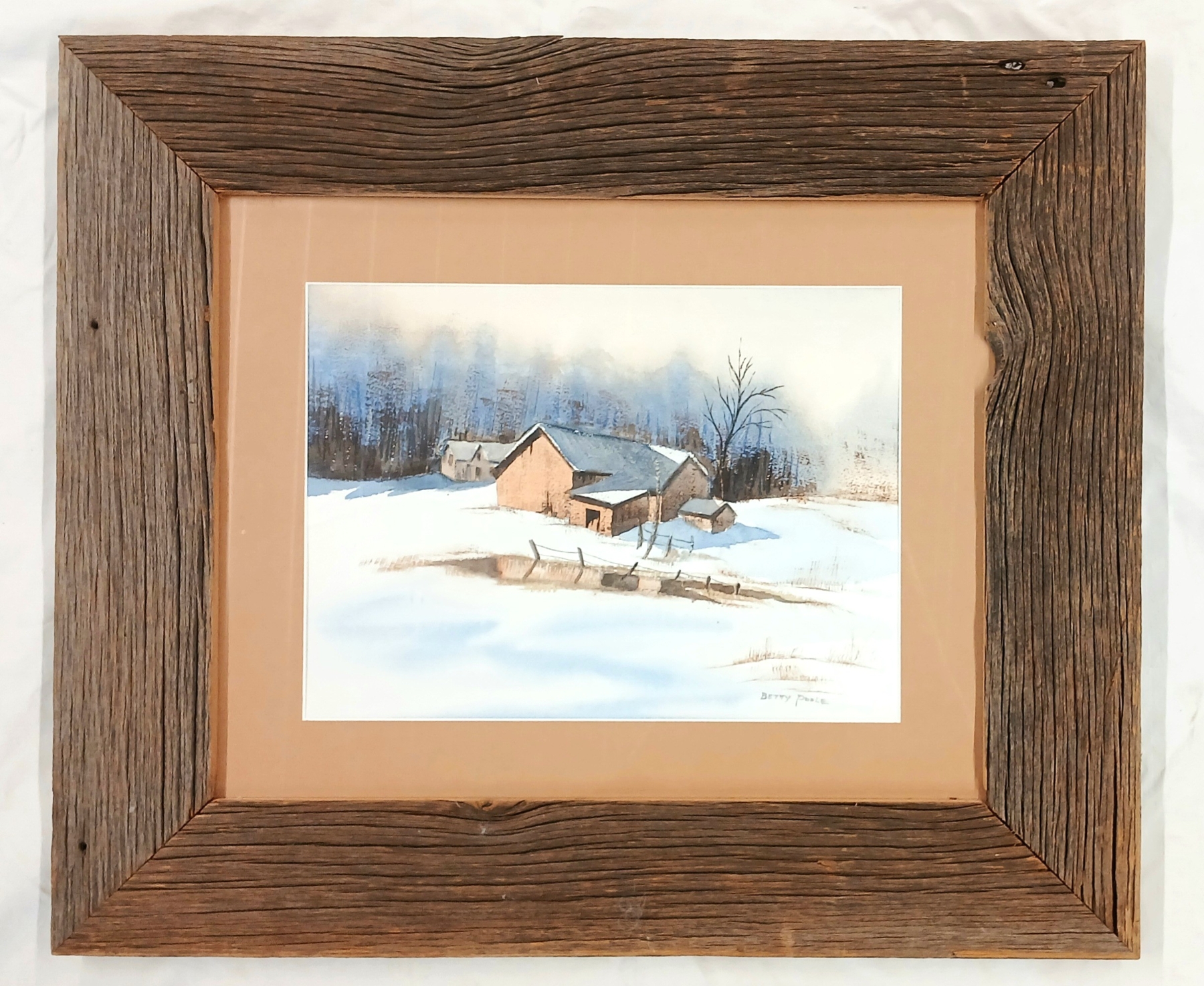 WINTER FARM BY BETTY POOLE - FRAMED WATERCOLOUR