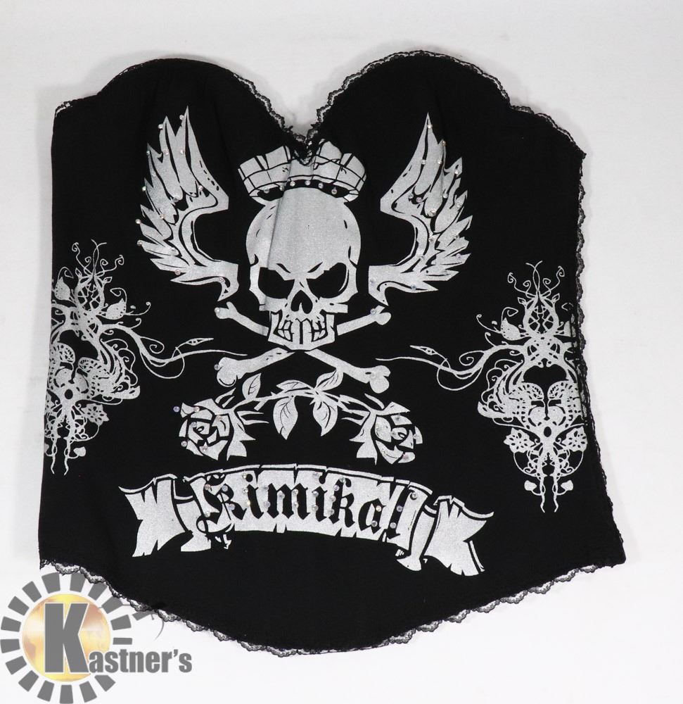 WOMENS BUSTIER: BLACK/ WHITE SKULL SIZE XL
