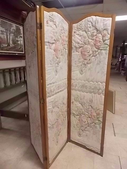 WOOD FRAMED 3 PANEL SCREEN - NEEDS SOME TLC