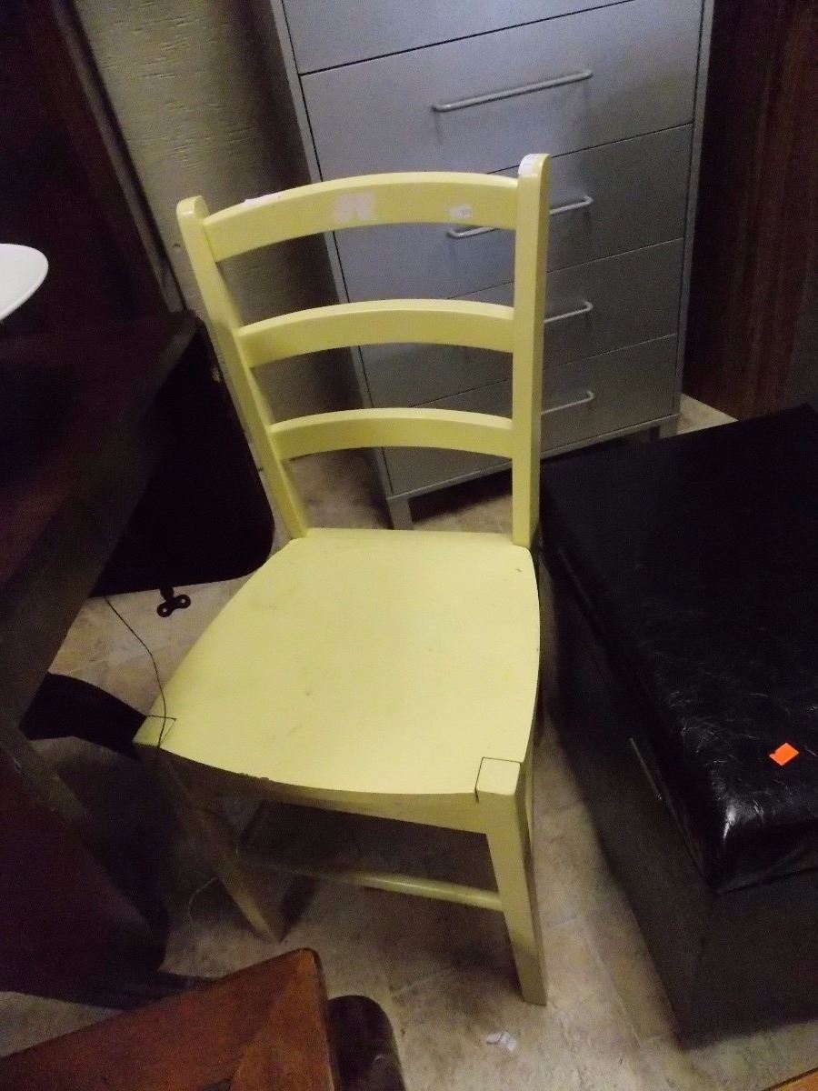 WOOD LADDER BACK DINING CHAIRS - PAINTED YELLOW - 2 X BID